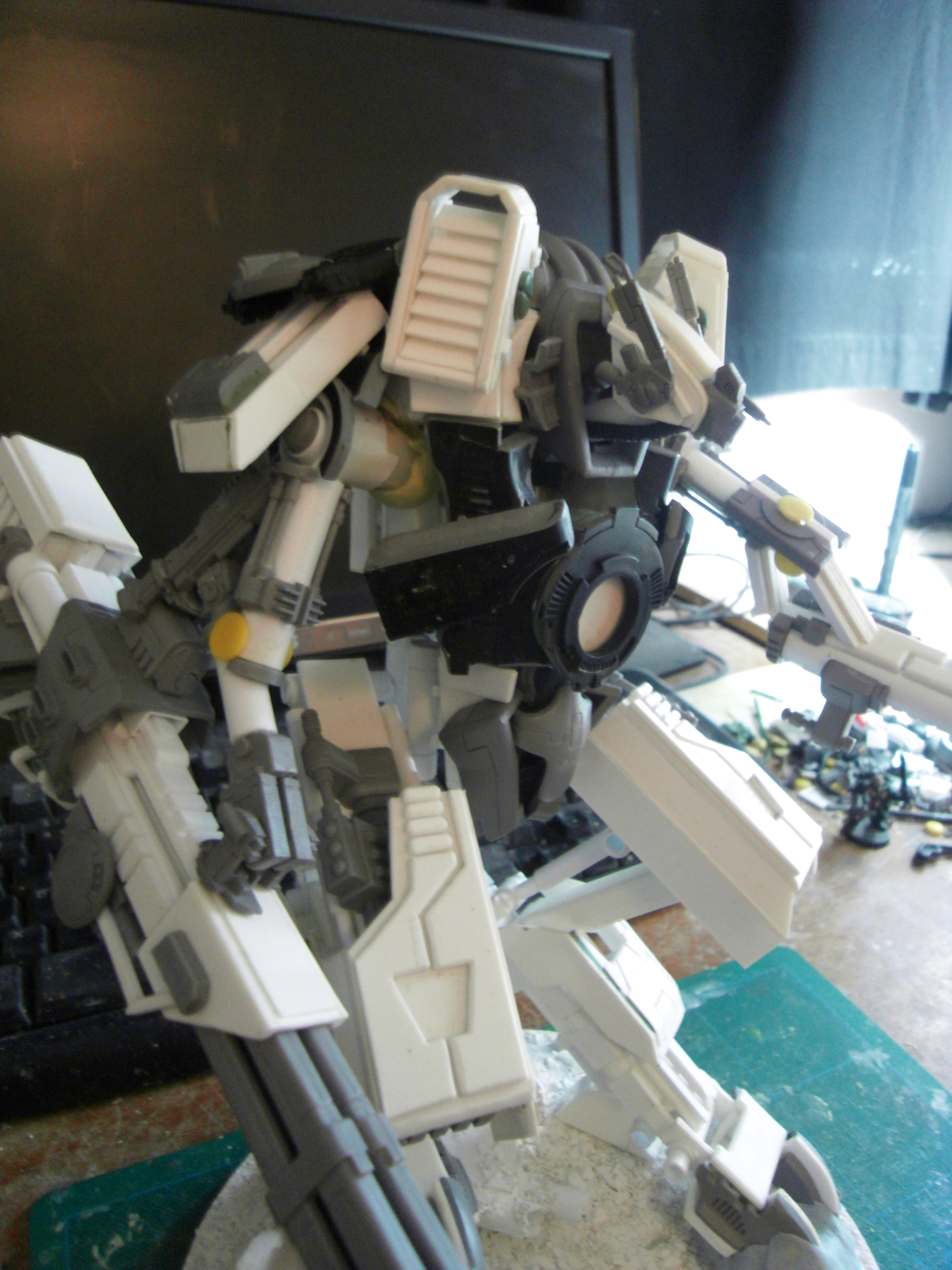 My best scratchbuilt piece up to date is a Tau Barracuda. It is a bit low on details, as the Apoc game it was meant for came quicker than I was able to work on it, but I'm still happy with the results.