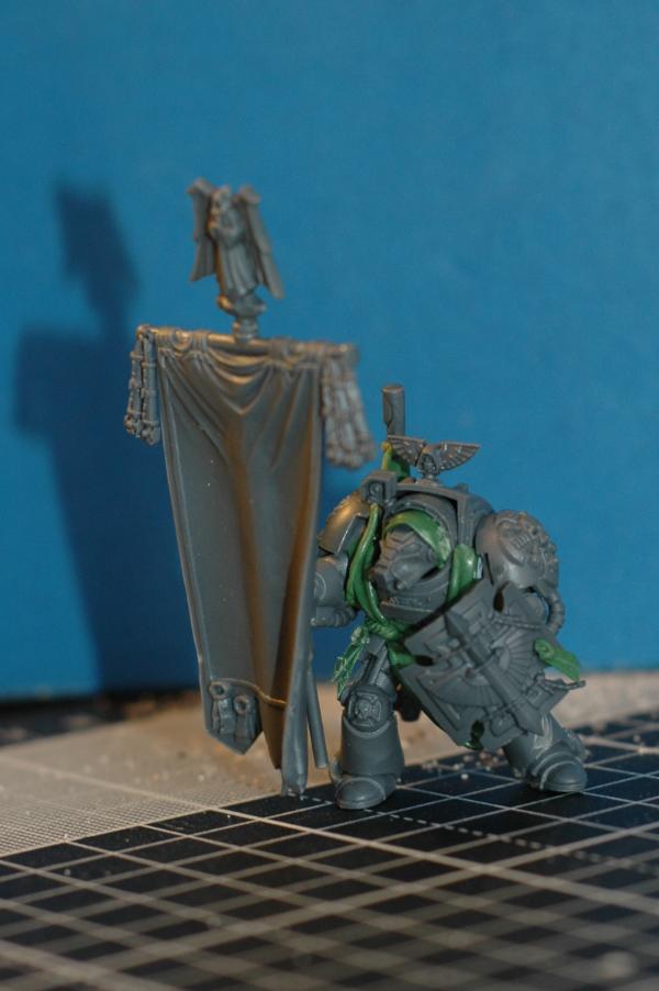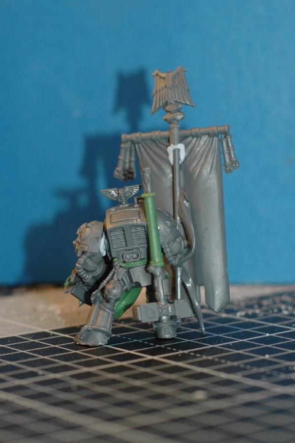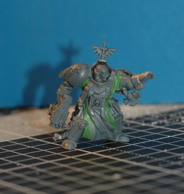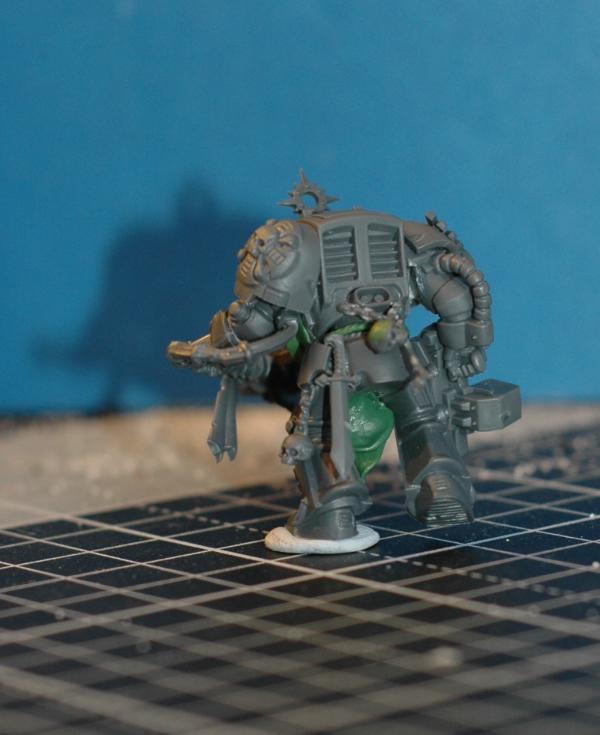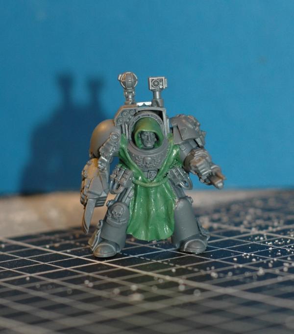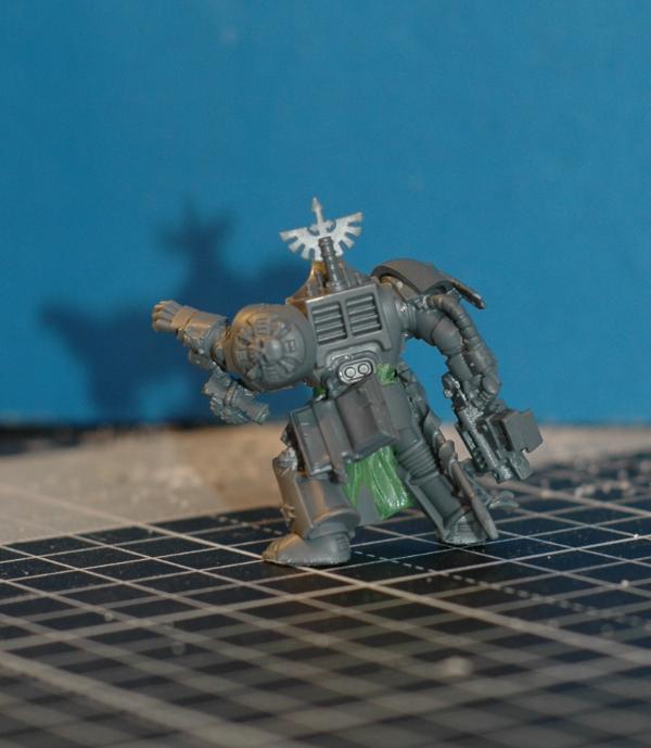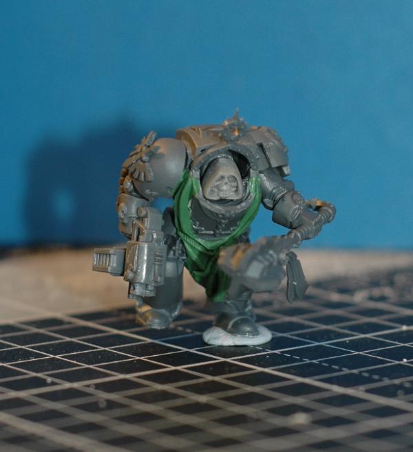 You can see how he's been bulked out with plasticard and GS to make him a bit heftier than your average termie. Head from Anvil Industries