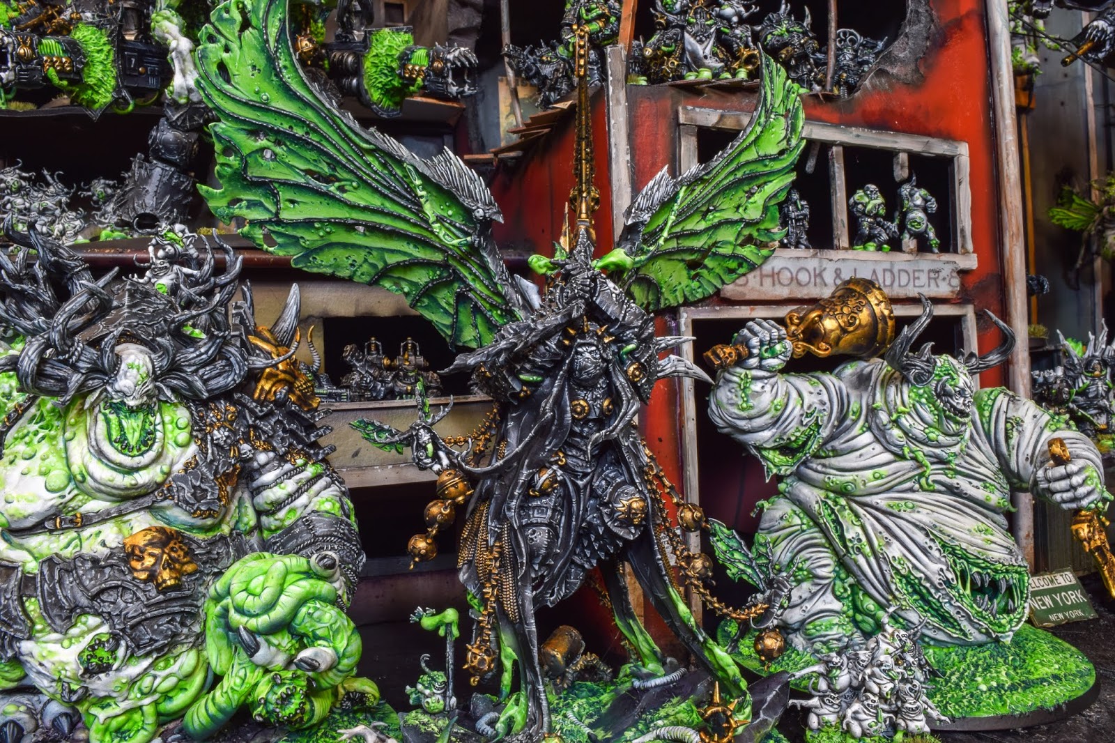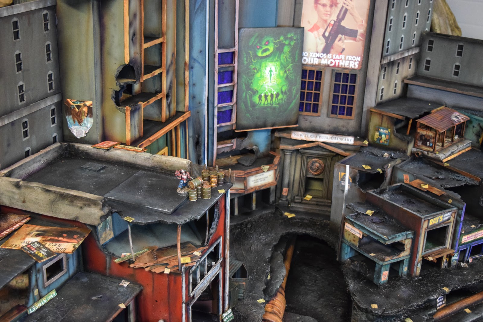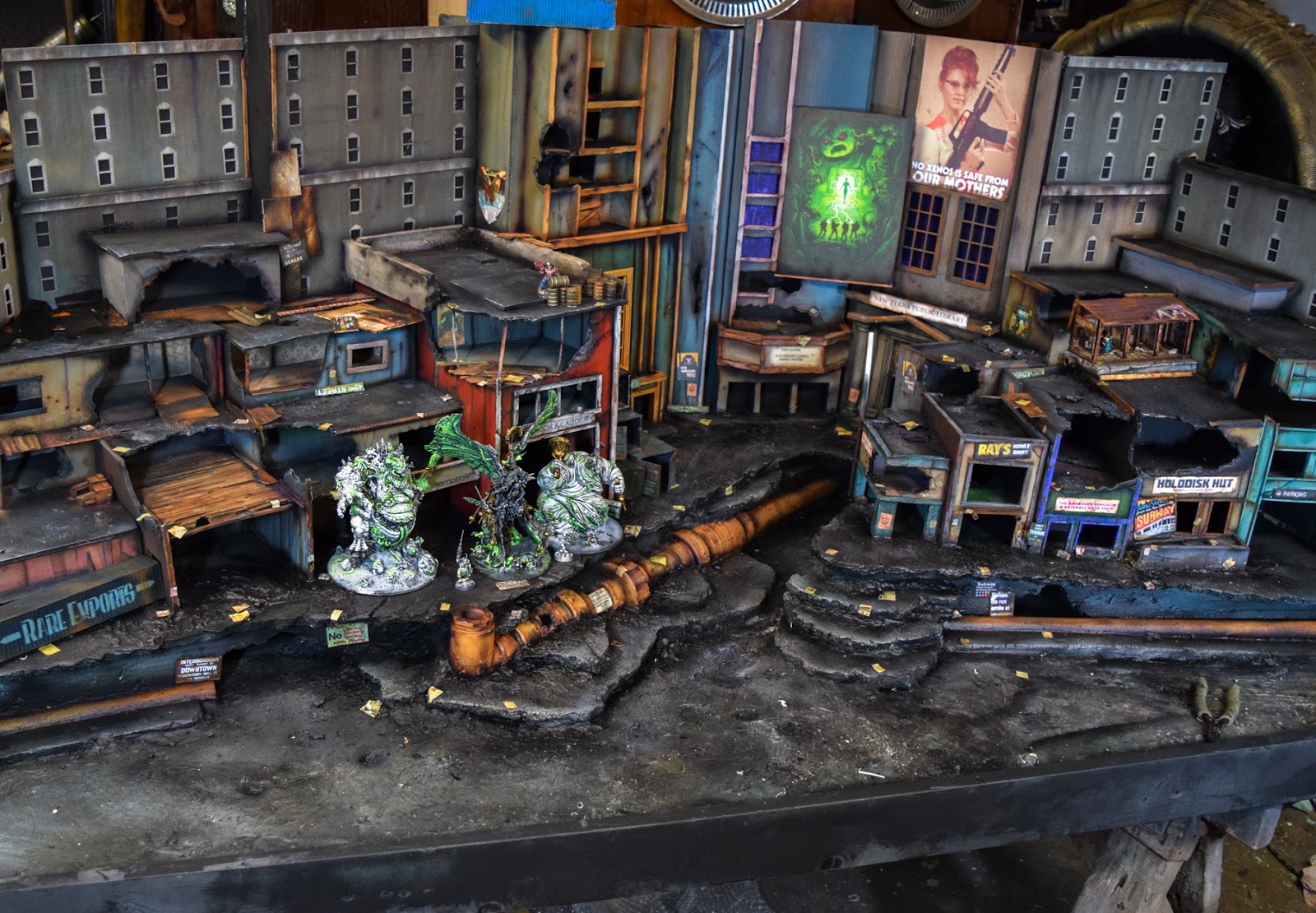 The giant Hexfleet Virules Nurgle army is pretty much a wrap! That means backdrop time. This is my biggest one yet, at seven feet wide and five feet deep. Needs to be quite large and also structurally stacking with "shelves" of space in order to get the army in there, and also give good images of every model. Each model being much more accessible than on a flat plane. Couple that with always wanting a really good and solid urban backdrop, and you have most of the inspiration for the work so far.