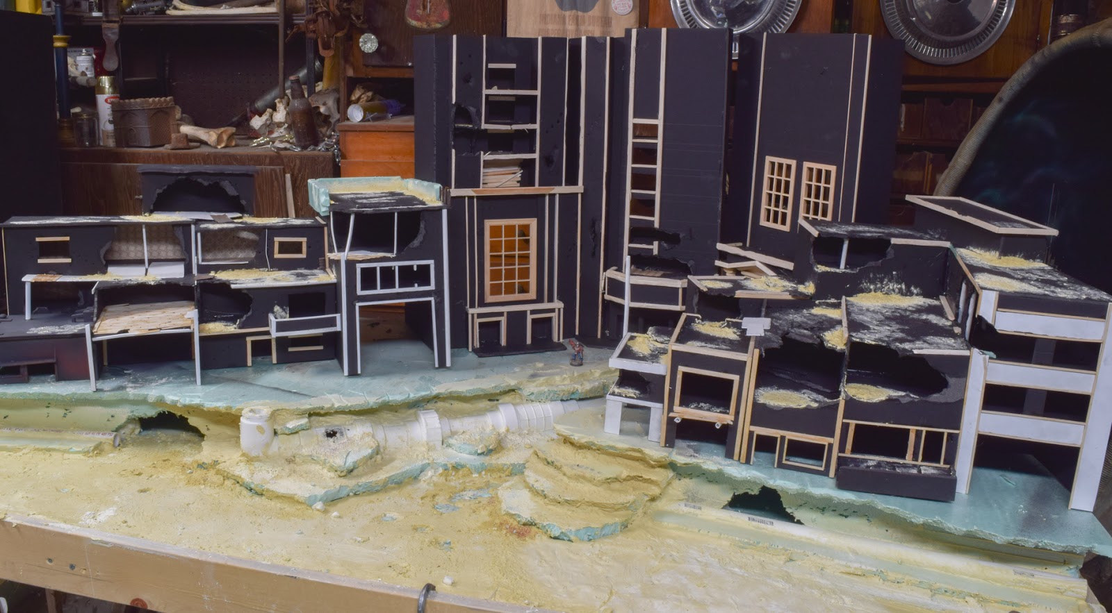 Will post paint updates with before and after as progress is made. The display is so large, in order to paint it each block of buildings is a separate sub section. Two clusters on each side, back buildings split up, and the base for a total of five. Once the buildings are painted, they will be attached and the concrete finished. This will also correct the uneven bits as they arent glued down flat in these photos.