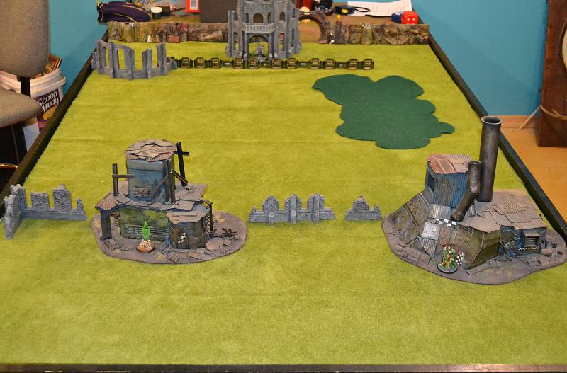 Game Set Up Following the rules in the primer, I laid down my Aegis wall first in my deployment zone. The we took turns putting out each of the six terrain pieces which had to be mostly, if not completely... in our own deployment zones. I had 2