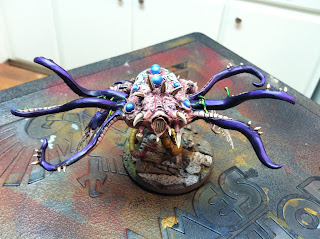 I had a lot of fun painting the various textures of the model, ranging from slippery tentacles to slime to smooth ceramic surfaces to corrupted flesh, spikes and eyeballs. I think everything I needed to test the rust on my skills was in place.