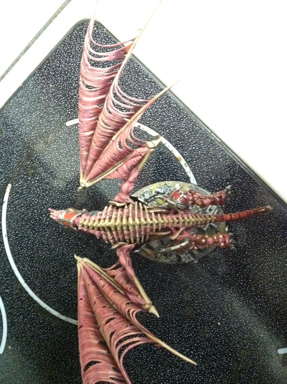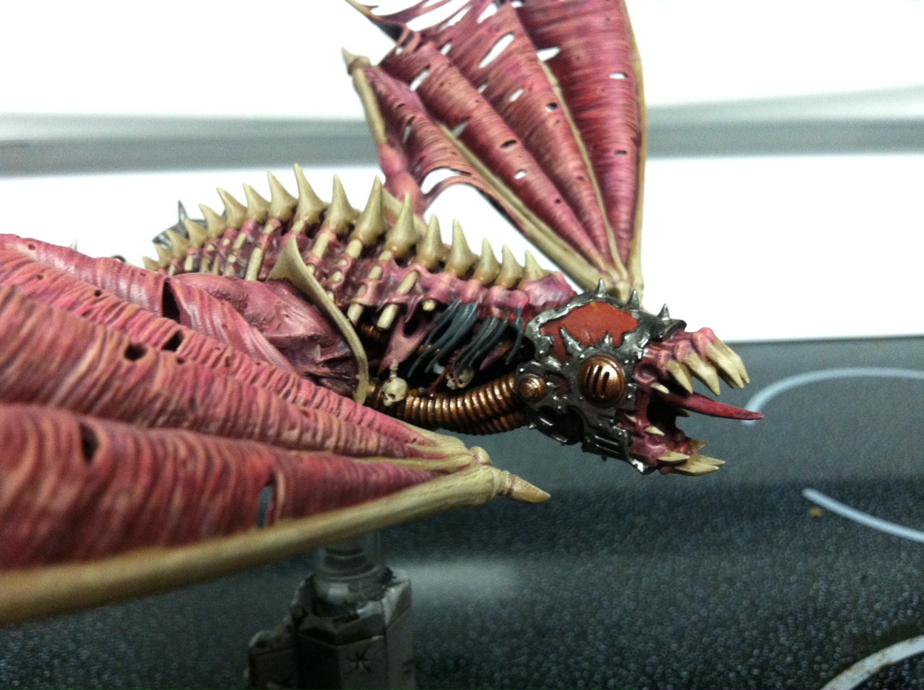 From the underside, the same process applies, but we also get to see the large Chaos emblem and more exposed wire and bone. Which, while I wish it could be seen from above, is still a nice touch that I imagine strikes fear into the heart of even the Astartes. All in all, the Drake itself is seriously my best effort in terms of painting and is sure to be a centerpiece in my army in the future whether the Word Bearers are joined by Traitor Guard, Daemons or any other bad guys that could join up with the bearers of the Primordial Truth.