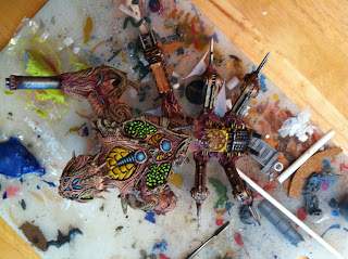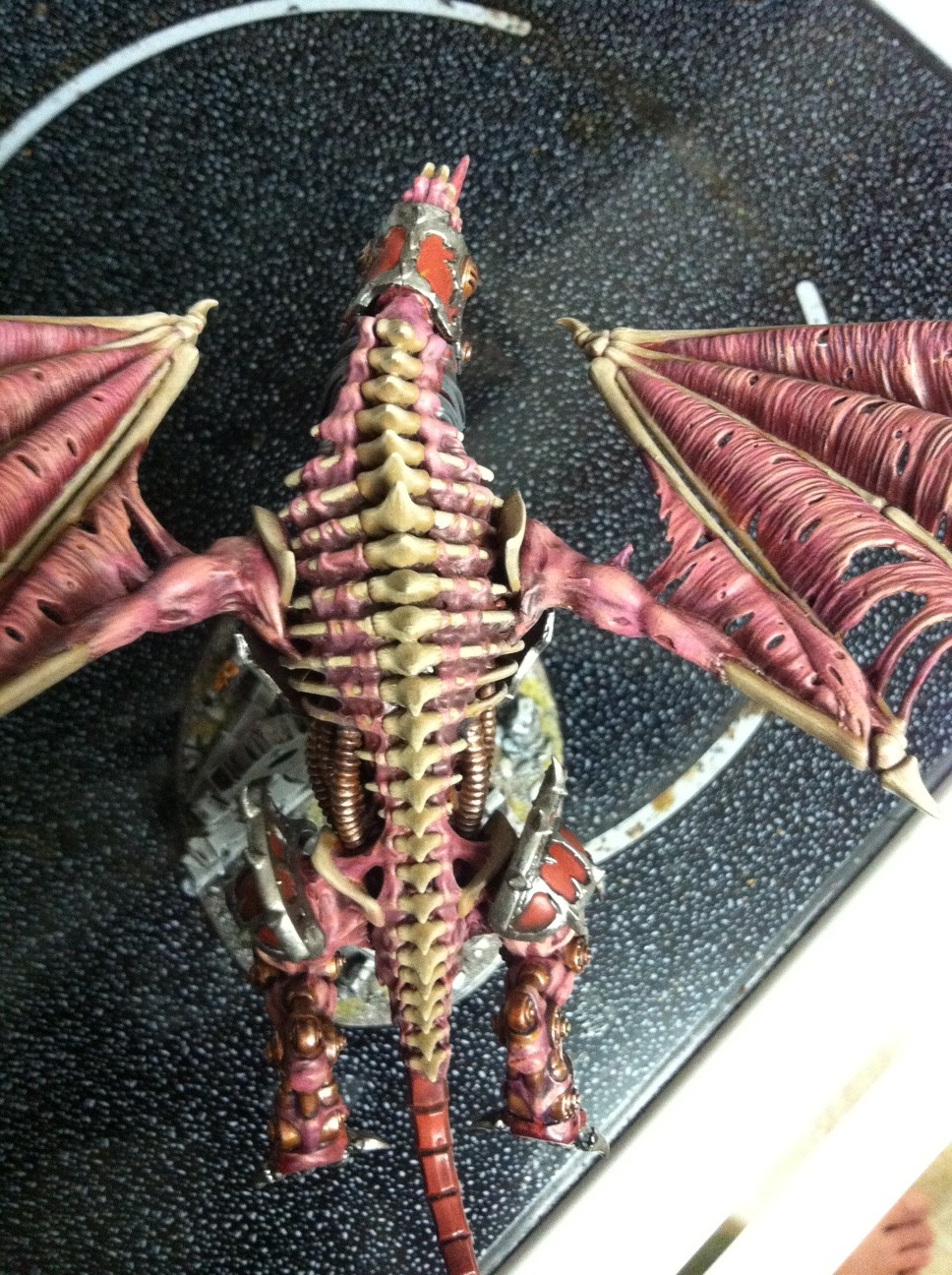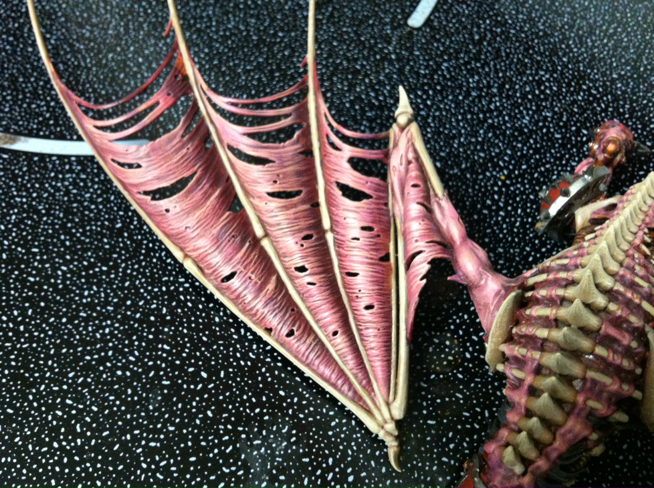 The fleshy parts were painted using the first half of the steps for my corrupt flesh tutorial ... and I might leave it here or take it up one more shade. I am super happy with how the wings and back are taking the paint so far and can't wait to see where it goes tonight.