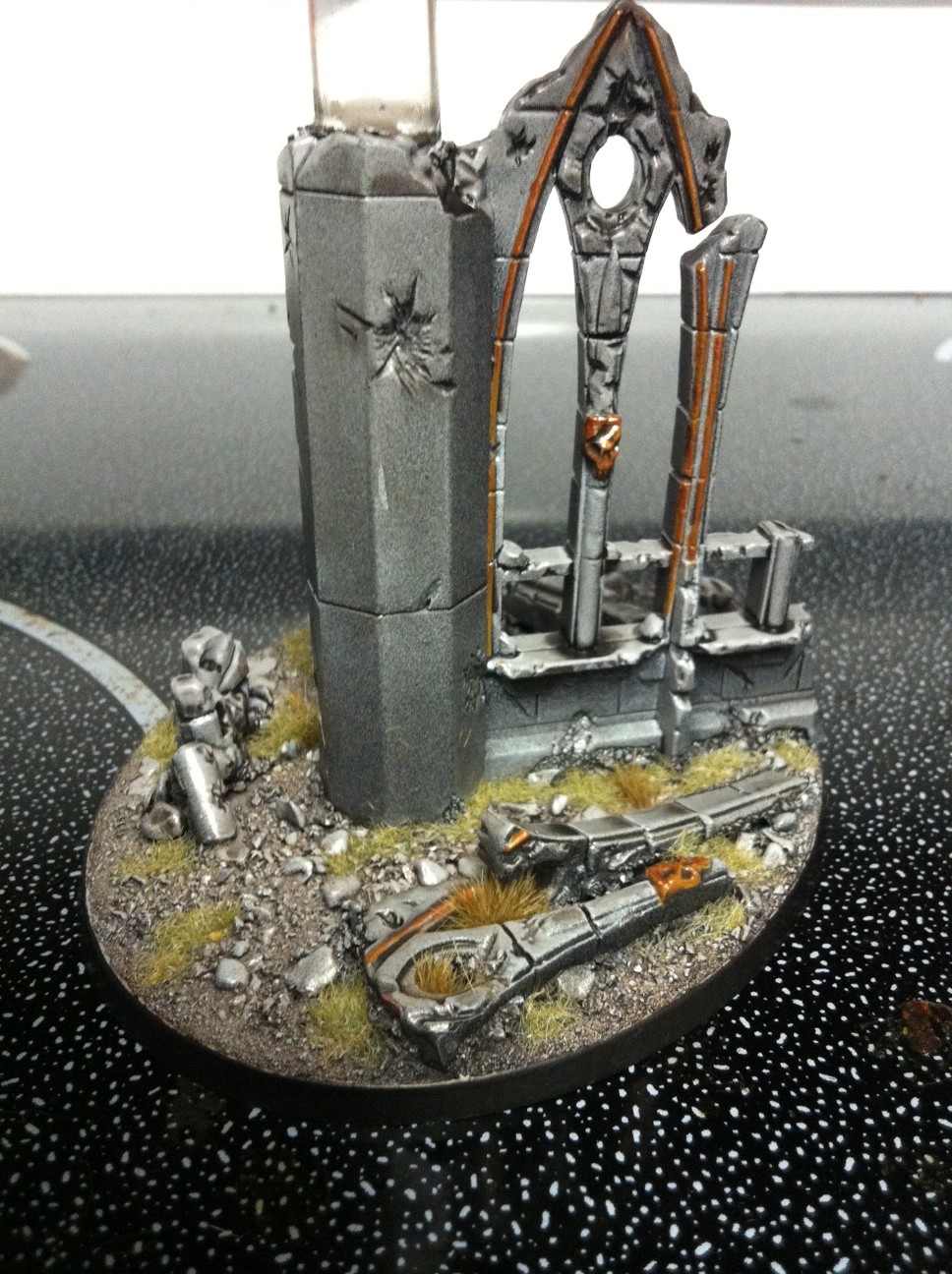 No model is complete without a good base. Here is the final product for the base, which really came to life on it's own with just a little coaching from the brush. As stated in previous posts, I wanted it to look like this either was a world where the Word Bearers had already destroyed the false idols of the corpse god or perhaps were even on a world they had once "Enlightened" in the Crusade Era and have come back.