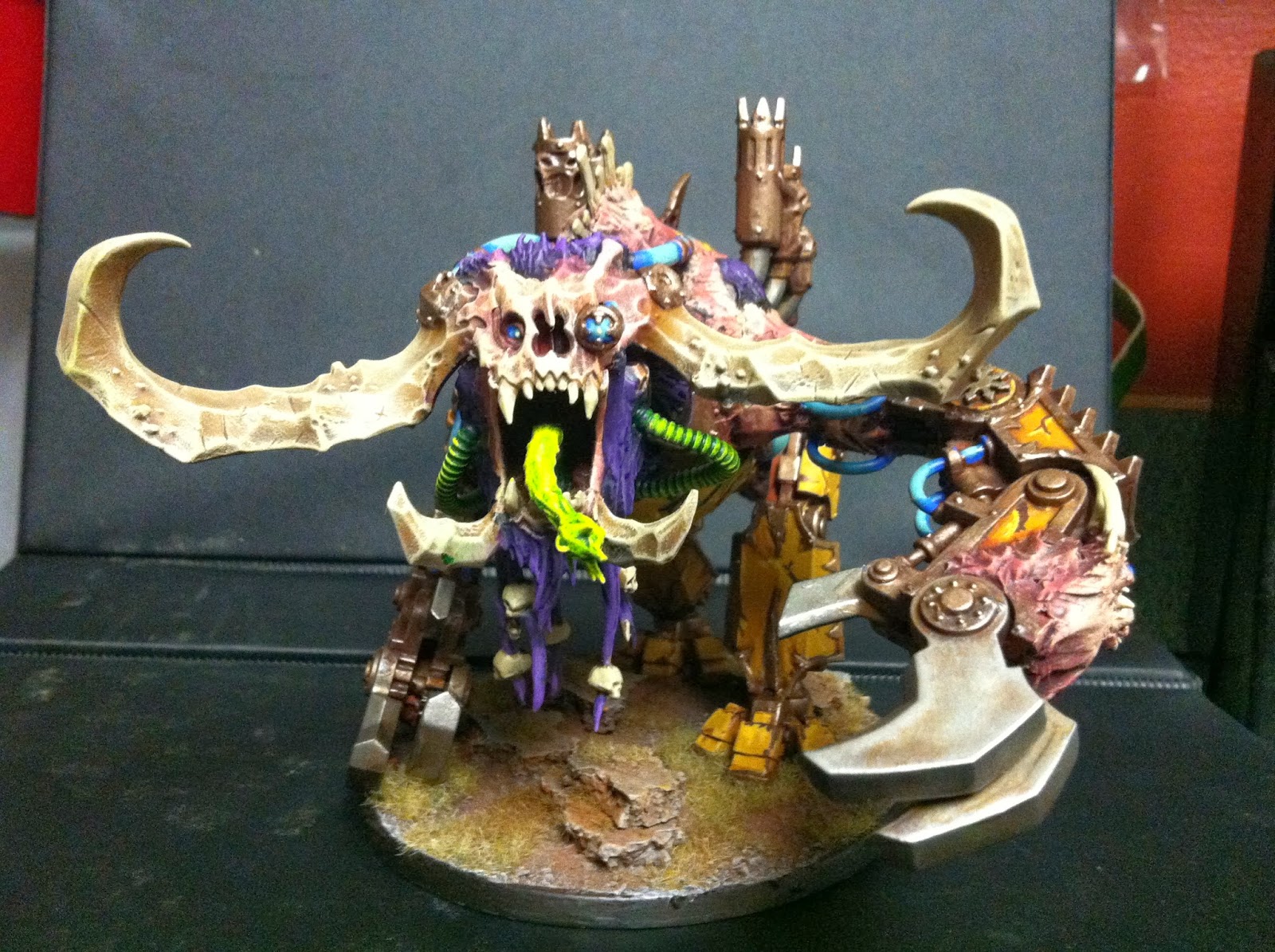 I am back f4om deployment and ready to drop some work here that I havent showcased on dakka yet. First up is the Mammoth Maulerfiend! Lotsnofmconversion works here, drawing bits from fantasy and 40k with plenty of green stuff. Enjoy.