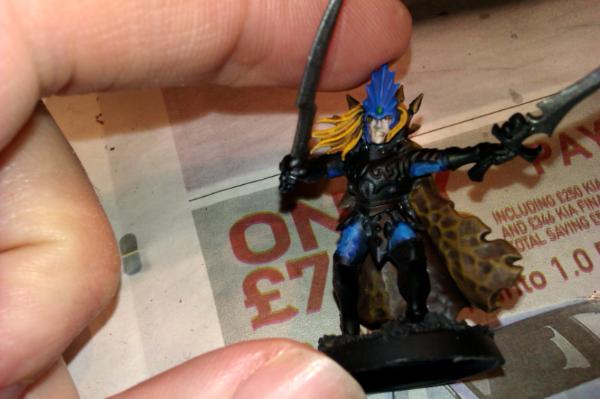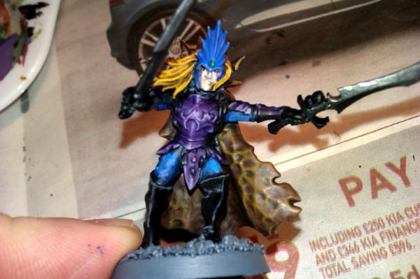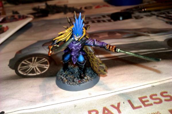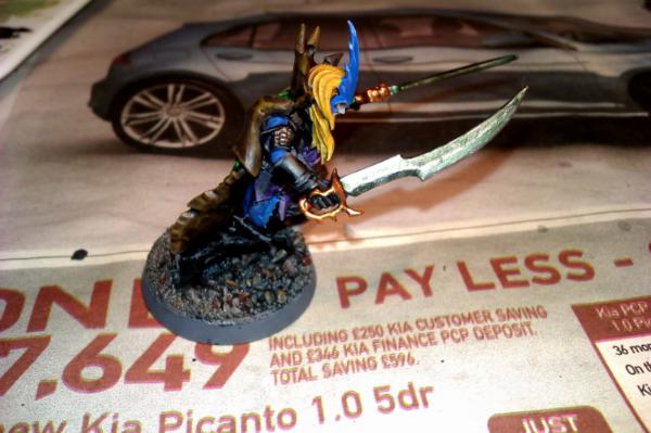 It's a pretty straight forward use of a Dark Elf Corsair with a Dark Eldar power weapon arm.