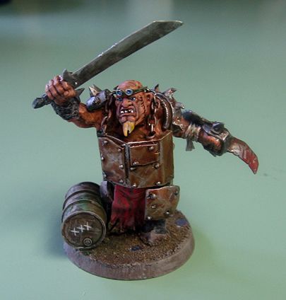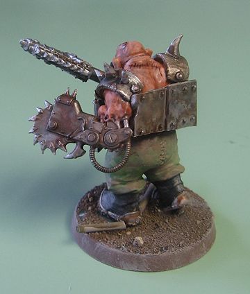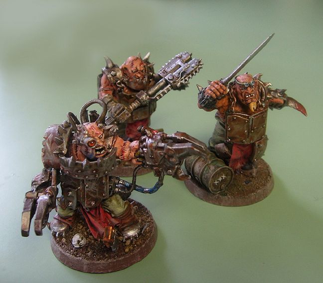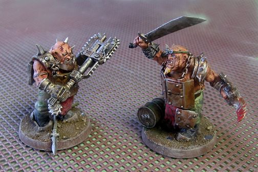 Kitbashed from Bull Ogres, ABOR Ork Warboss, and Ork Nob bits.