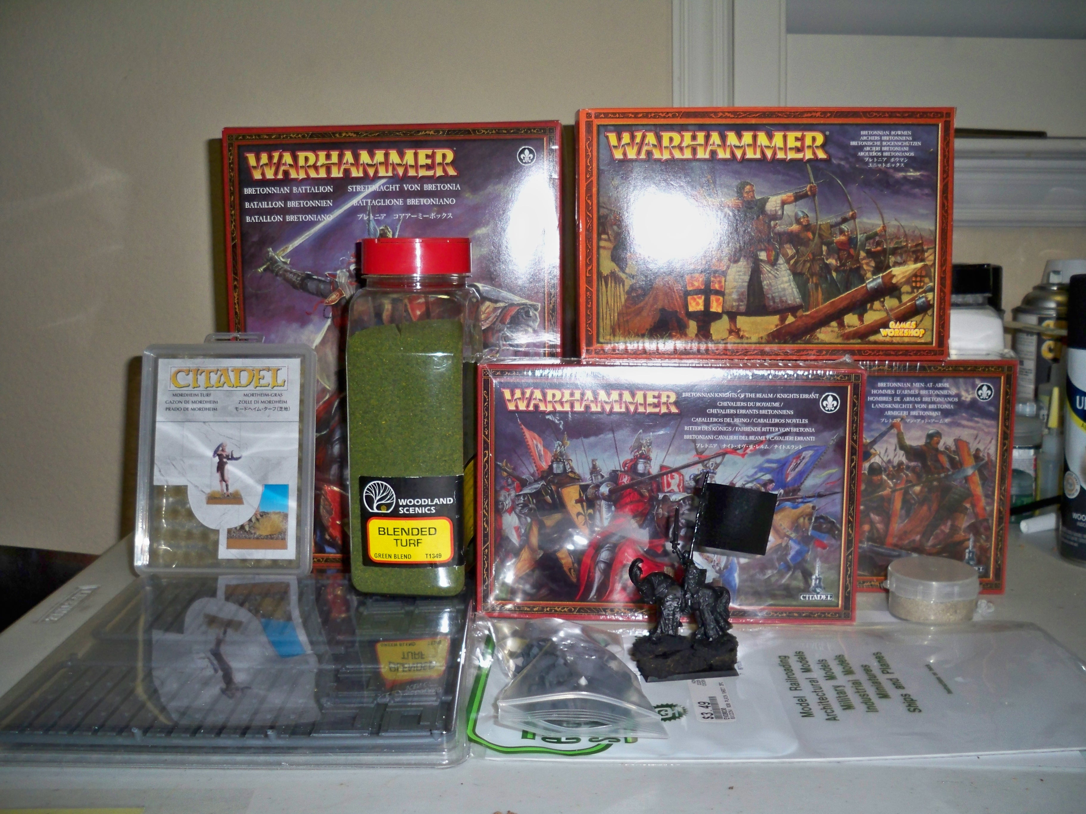 This weekend I finished half my squad of archers, and have 5 more to go. I also built my bretonnian lord. I made him out of plastic because I despise finecast, and avoid it when I can, and I think my looks better then the ones that are made. Also I finished my Fryer Tuck (the fat model, with lots of alcohol), I plan for him to lead my men at arms. I also finished the unit filler made from a bretonnian men at arms pole arm (the thing broken on the ground, and in the orc's face), a men at arms model, the orc is from the empire huntsmen/archer box, and the rest is, well cork and sand. I hope you have enjoyed this update, I'm now on step closer to obtaining the holy grail (a fully painted army).
