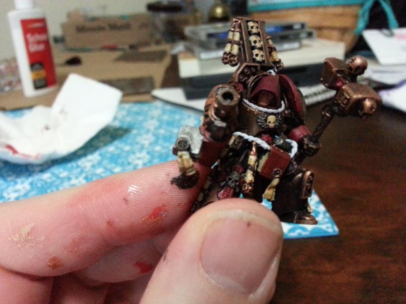 You'er probably correct on the right arm. I might replace the shoulder pad, though I need to make that call after i get the other shoulder pad and hammer attached. I'll keep the purity seals because of personal presence. As for the crux inquisitors can acquisition anything in the imperioum and almost all terminator armor has a crux somewhere.