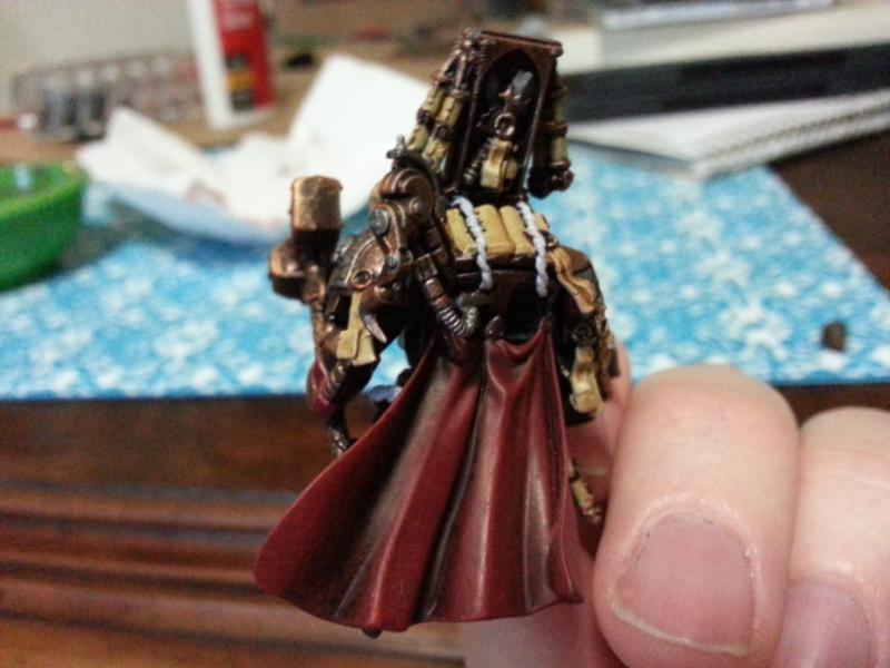 With an Inquisitor, the sky's the limit. Ravenor, Eisenhorn, Amberley Vail, Quixos, (and the list goes on!) all these Inquisitors have set the boundaries for representing one of their peers pretty wide. I think that Inquisitors should have an extremely personalized flair, and I think this guy is coming along phenomenally on that score.