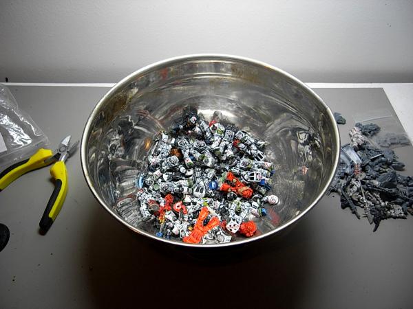 And the point of no return - all the bases taken off, the arms broken off, and plastic bits discarded - they're ready for a bath of Nitro-Mors!