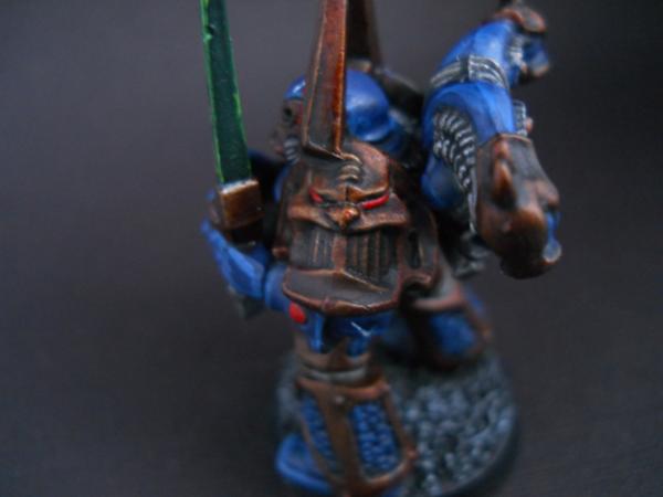 He's painted up as a member of the 'Dark Eagles', one of those chapters that GW made up a name and colour scheme for and then forgot about forever.
