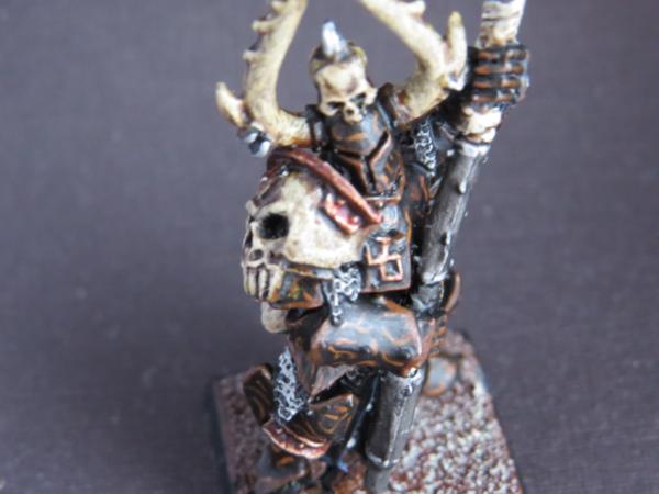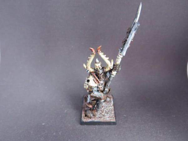 So, because I don't buy a lot of new miniatures but I have a HUGE backlog of old ones, I ventured into said backlog in search of something to paint and I found this WoC chosen model.