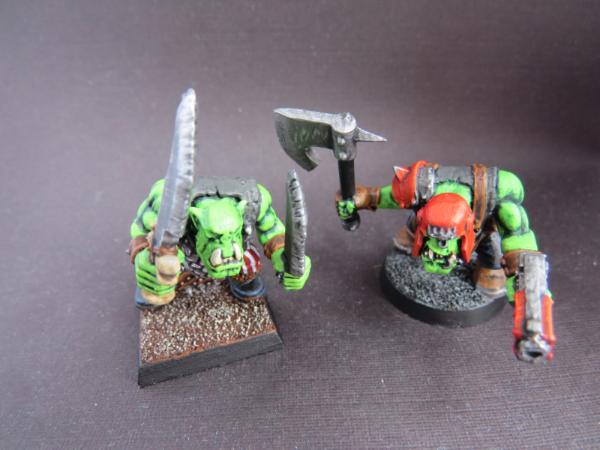 So later on this year, I'm planning to start a reasonable size project of some kind. Currently I'm thinking that an Orc/Ork army would be something fun to do, so I whipped up a couple of test models, one WHFB one 40K.
