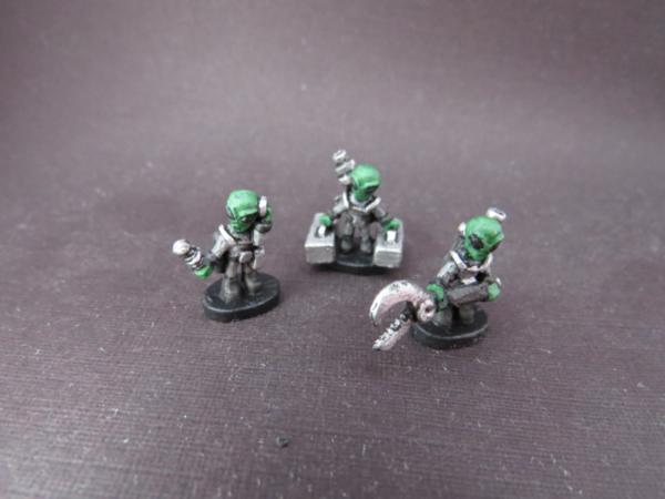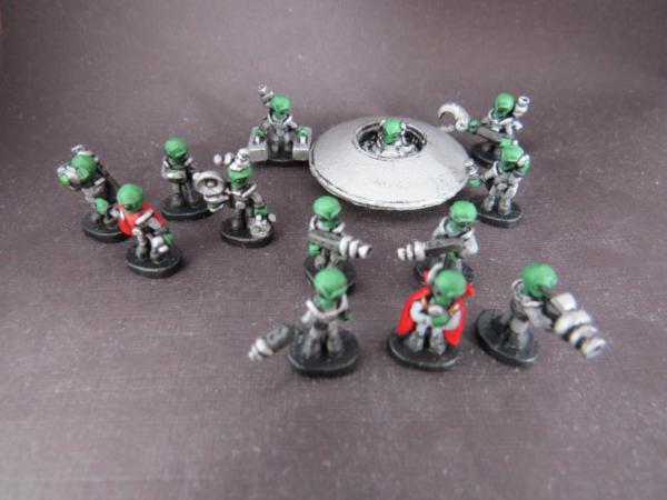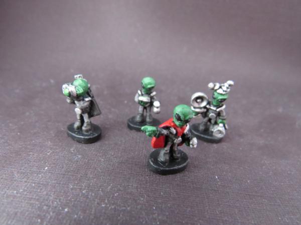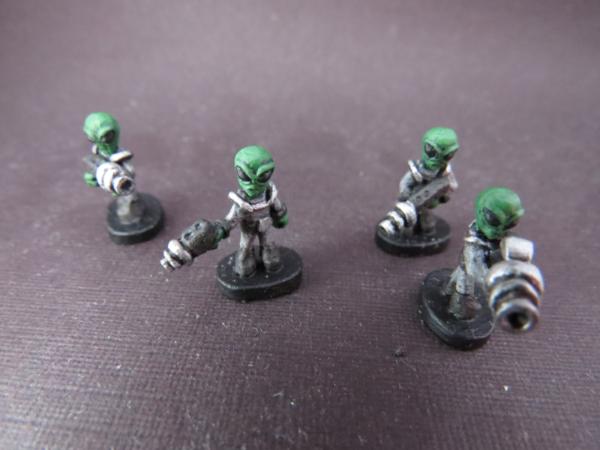 They're listed as "Grey Aliens" on the site but because I painted their jumpsuits and weapons grey and silver, they desperately needed some colour, so they became Little Green Men!