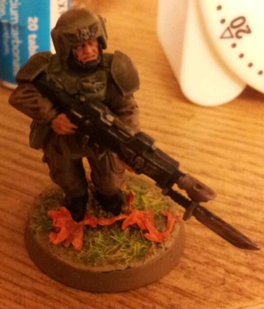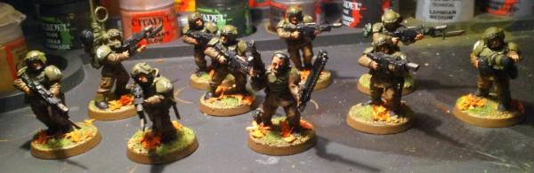 Nice guardsmen, and I wouldn't worry about colours too much, it's the 41st milllenium in a universe that is infinite, grass can be orange on some worlds. Like the use of the birch seeds. I think I'm gonna have to get some and try it out.