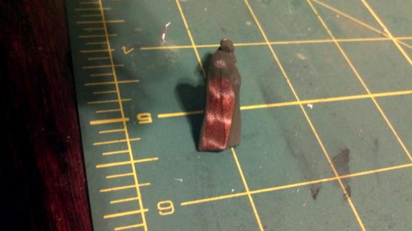 Anyway..the nail polish is this really crazy cool stuff that after you apply it, you hover a magnet over it and the metal that is mixed into the nail polish lines up in these very distinct lines. My wife shows me this, and I immediately snatched the bottle from her and put this on the very first bit of an undone model that I had: