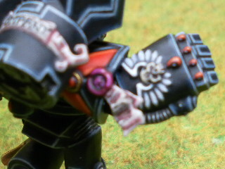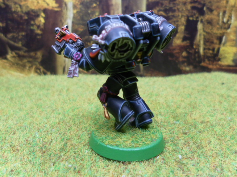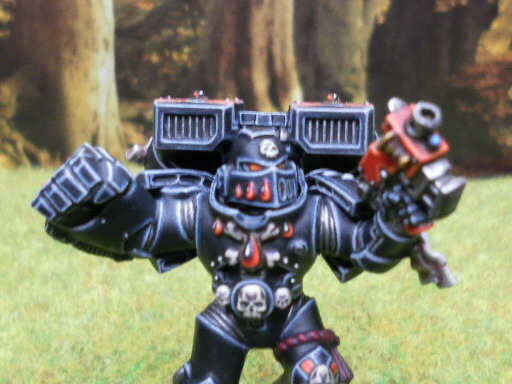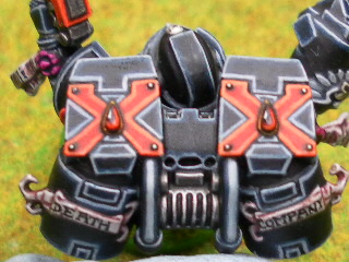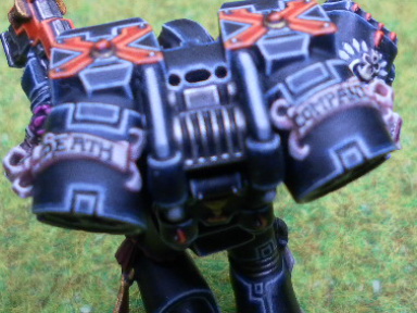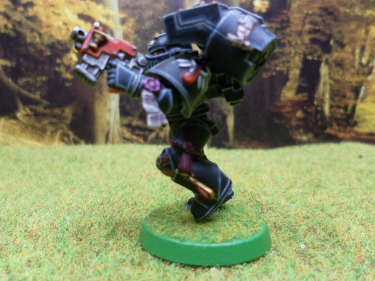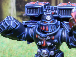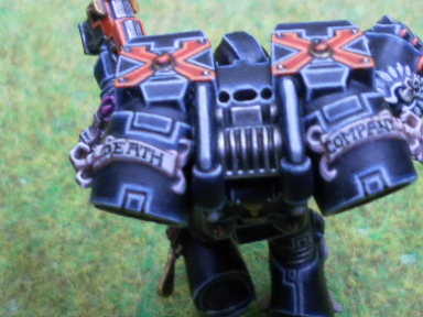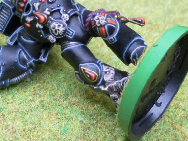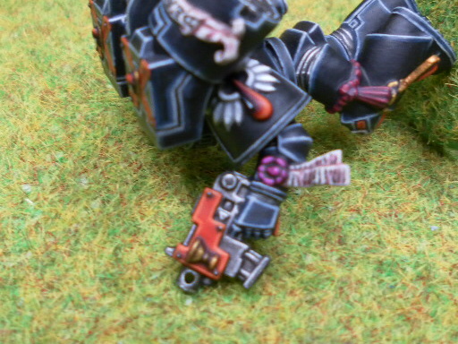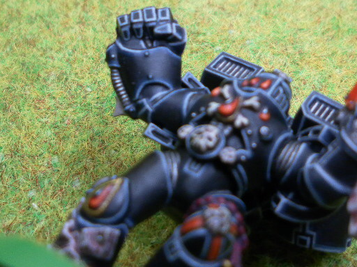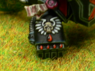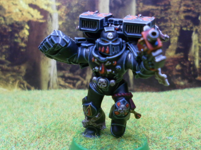really nice and clean paint job. I like to keep my bases simple also but I go for a grey gravel look. Its quick an easy yet is still grim / dark enough. I have a bunch of BA marines with "2nd Ed" style green grass basing... they've all been slowly getting redone, even if it just to add some gravel and a little flocking. How long did you take to paint him? Are you going to do that much detail work on the rest of his squad ?