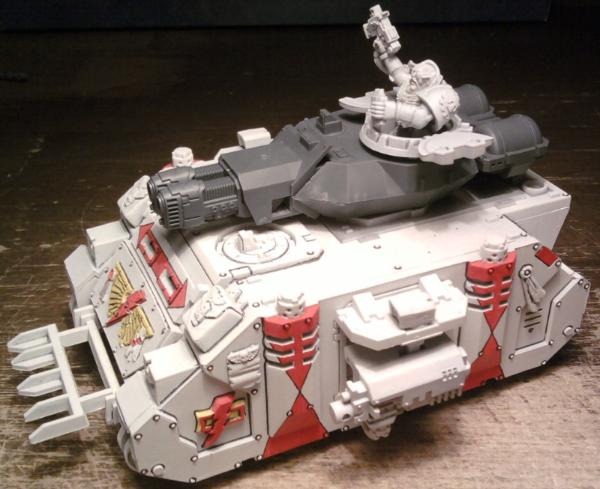 Russ plasma sponsons look like a decent fit. With major trimming, you could even fit three in there. But I don't really like the design, it's chunky in a bad way and you have to drill the barrels.