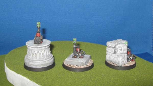 I make my own objective markers for each of my armies so that they look like something they are trying to get a hold of.