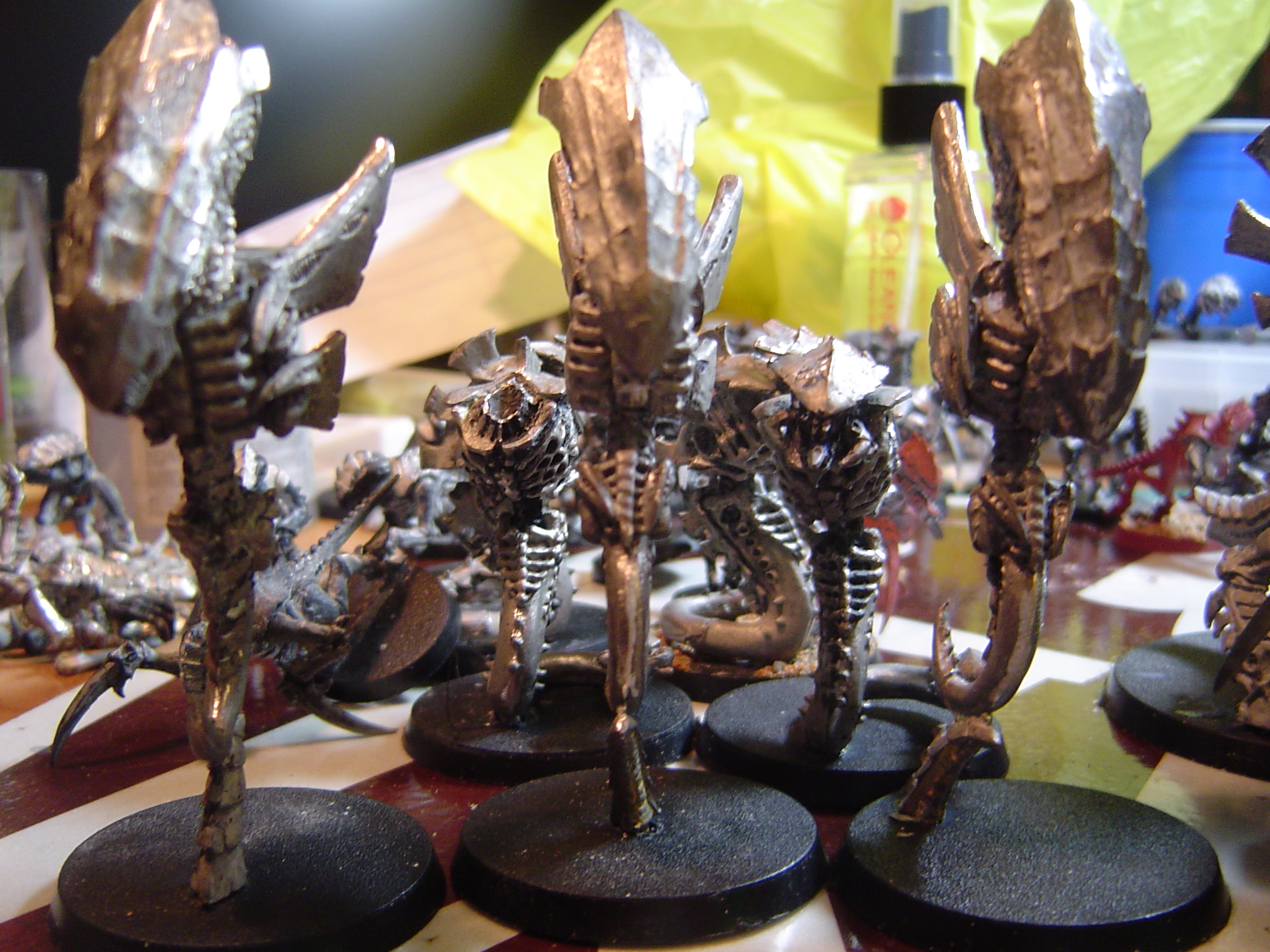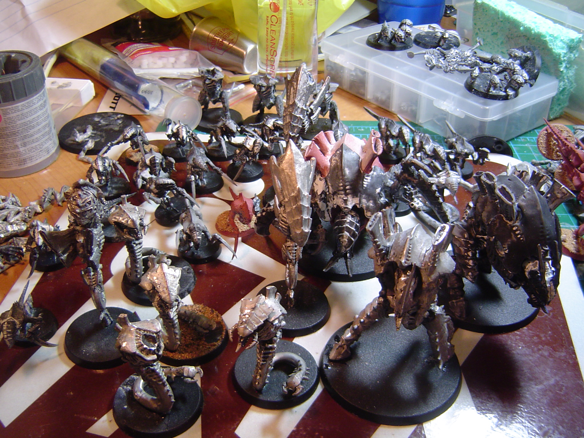 Finally the Tyranid hive fleet is taking shape stripped the models and am slowly rebuilding them. I have a bunch primed white and base coated clay red with ruddy brown..