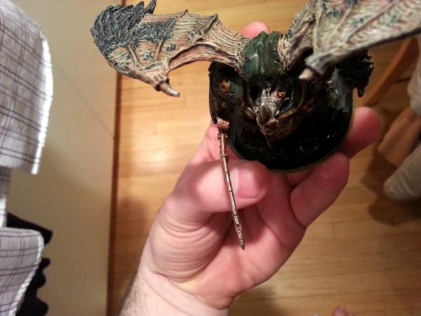 I was getting all my Nurgle Daemons out and ready for a new round of warfare with the new 'dex, and when i got to the prince, i noticed the sword had bent quite a bit in his styrofoam case.
