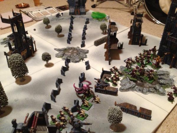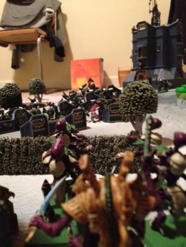 The Nids placed their 3 objs quite centrally in the middle of the map, one at a crater another at a hedgerow and the last behid an aegis line.
