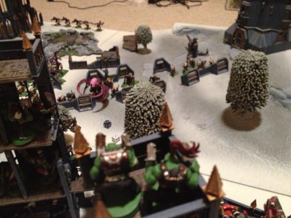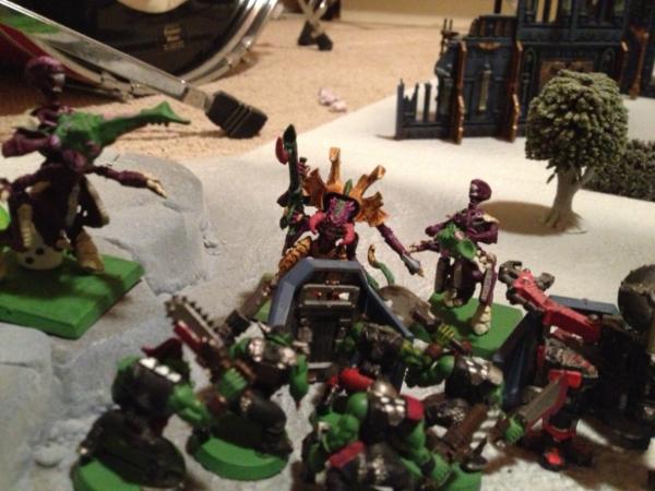 The Warboss and his unit then charged the remaining Tervigon, causing another wound on it for n losses but it held.
