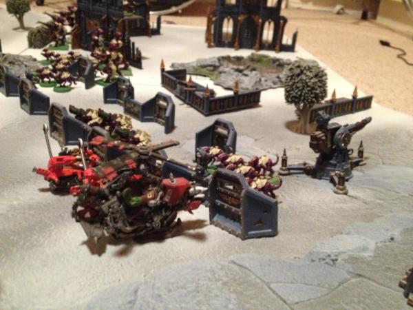 The Lootas deployed in yhe bunker on the left flank. This provided good cover and battlefield