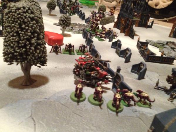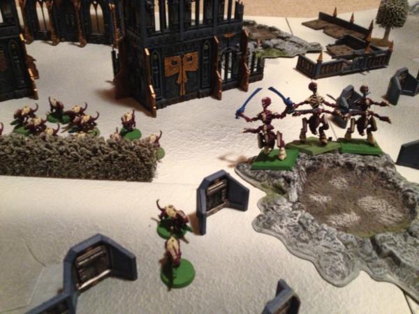 The Deffdread finished off the remaining Warrior instgibbing him too and consolidated 3” towards the Terms at the hedgerow.