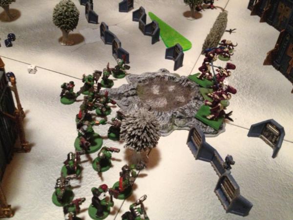 The Warboss unit had more luck however, shooting the Terms in the centeal crater and killing another four.