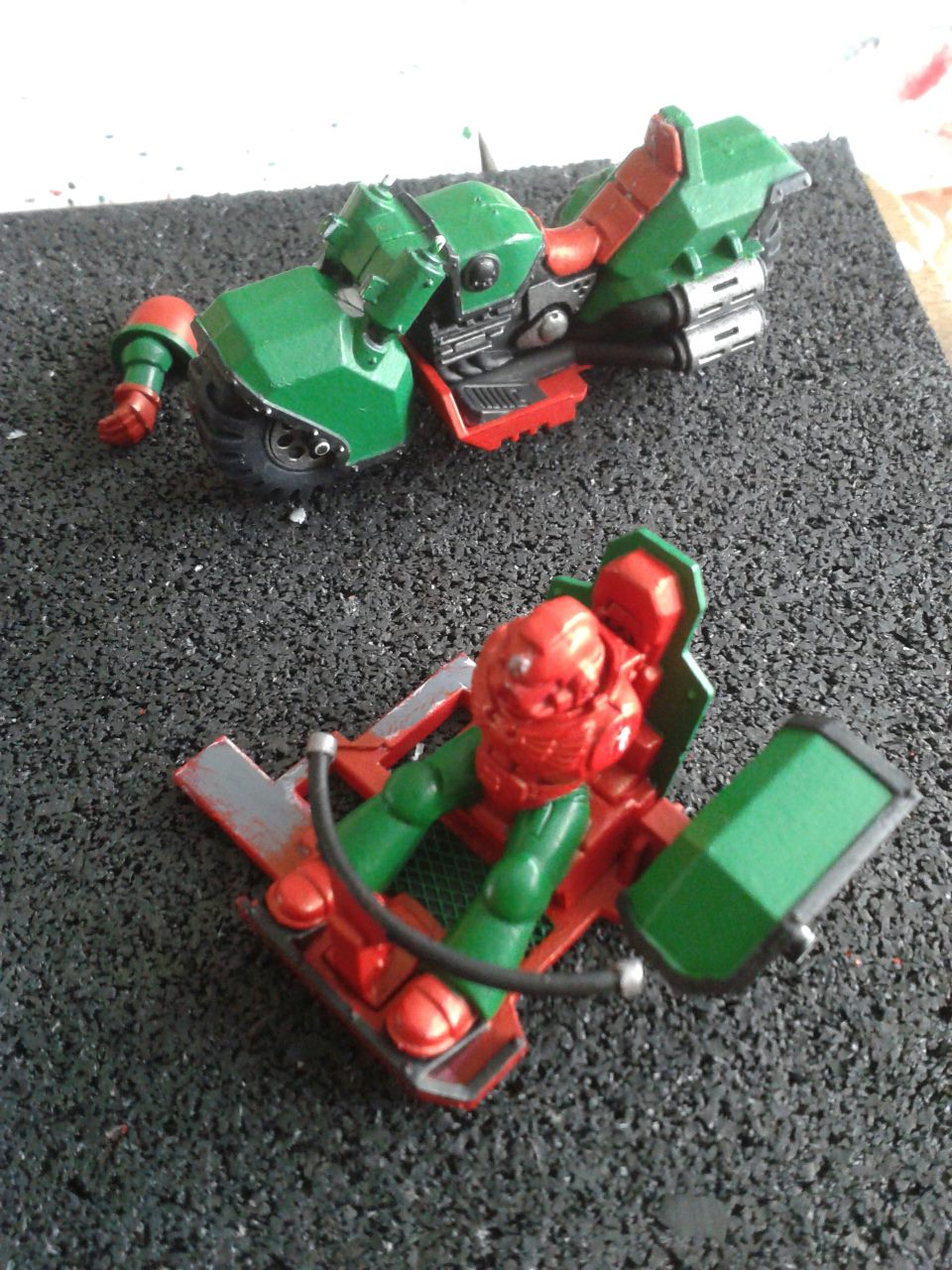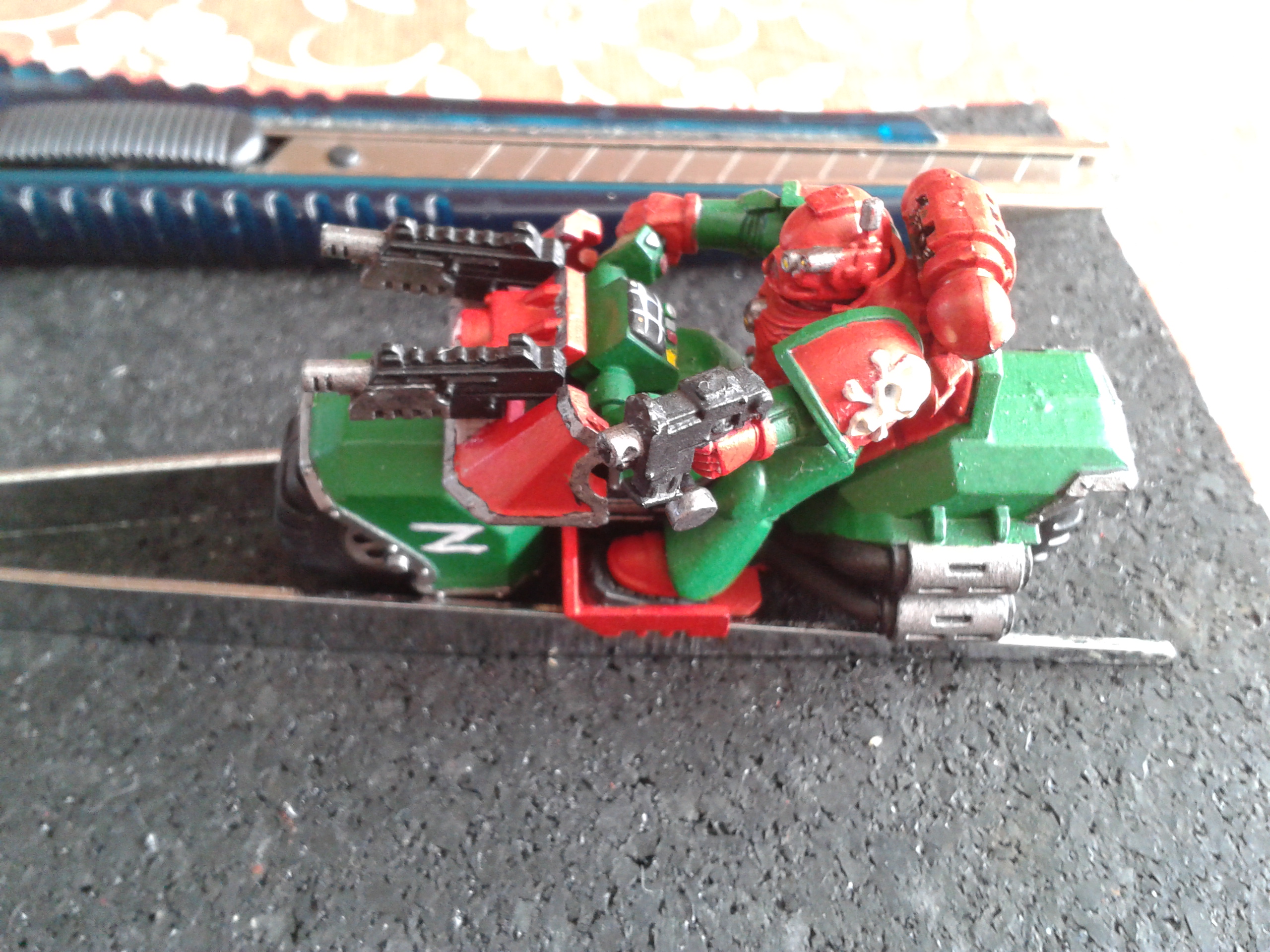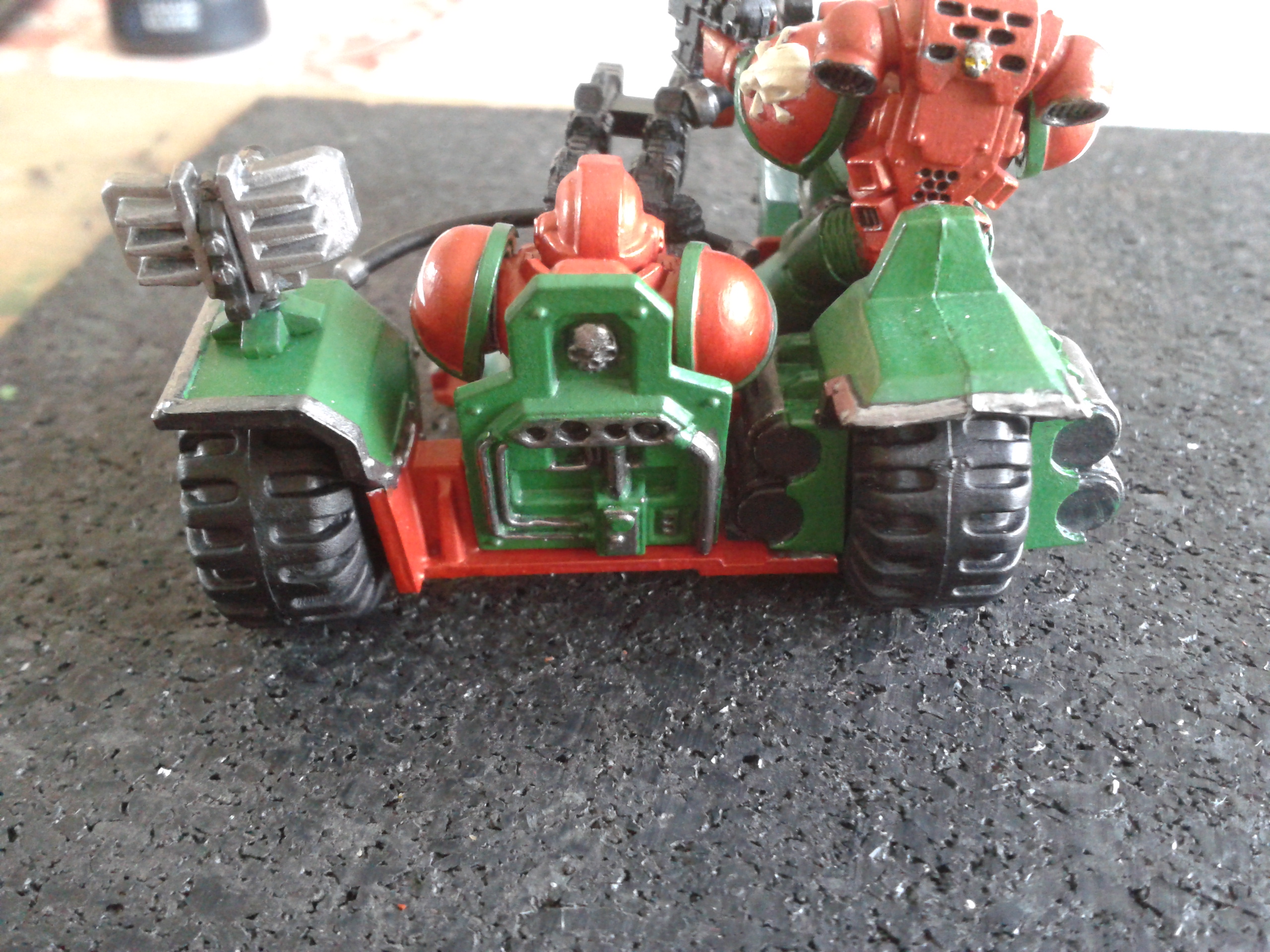 I had started the bike some time ago, then someone got me the sidecar bits for Christmas but I wanted to do something different for the heavy weapon. Originally I was going to use one the GW SM Missile launchers with extra spare missiles and a scanning/targeting type thing, but then I had a brainwave and decided to go with dual railguns. I think they look suitably lethal and would be really effective against armour (not that I actually play 40k, I just like the mini's).I'm also going to swap out the bolters for something a little meatier.
