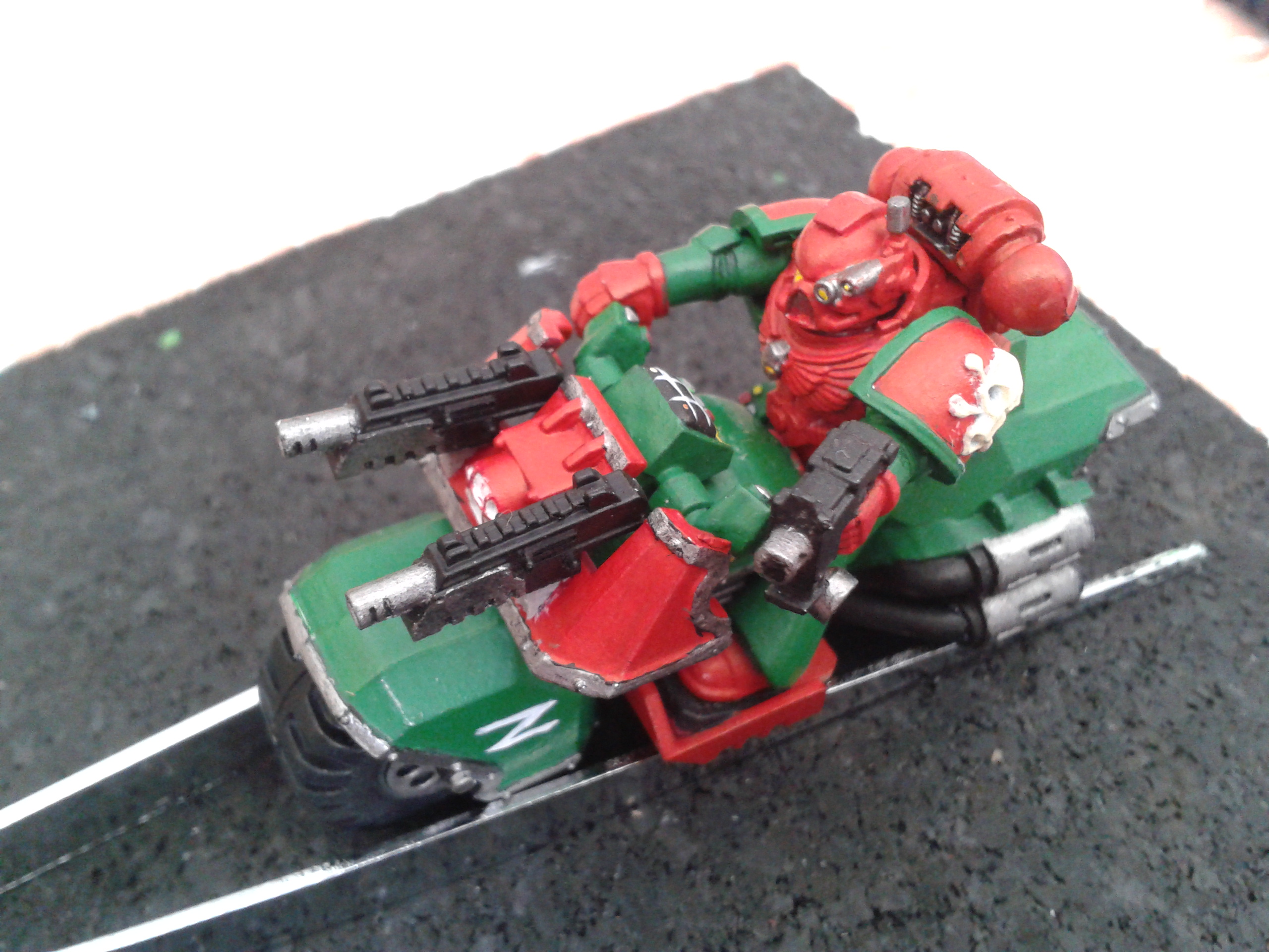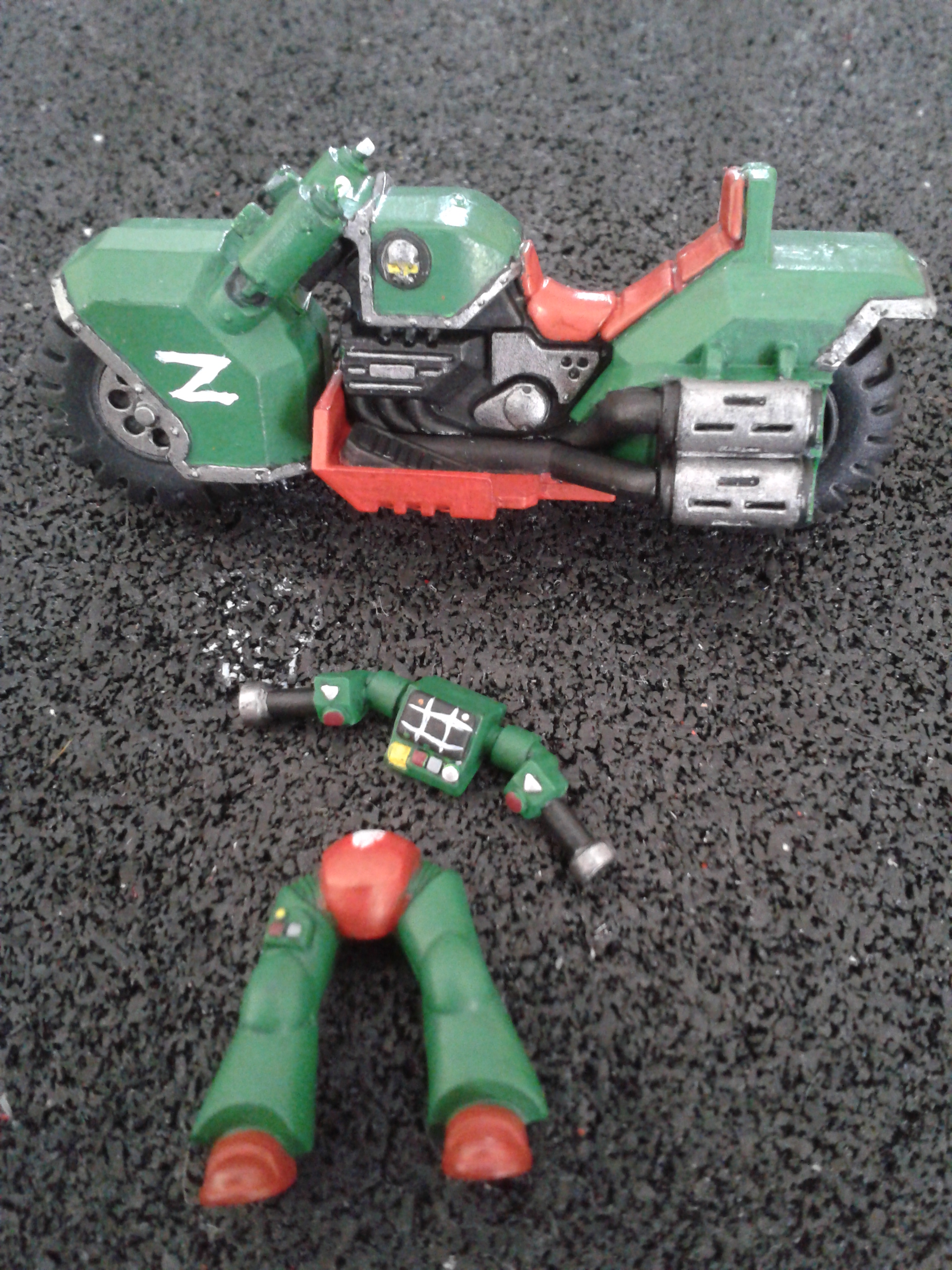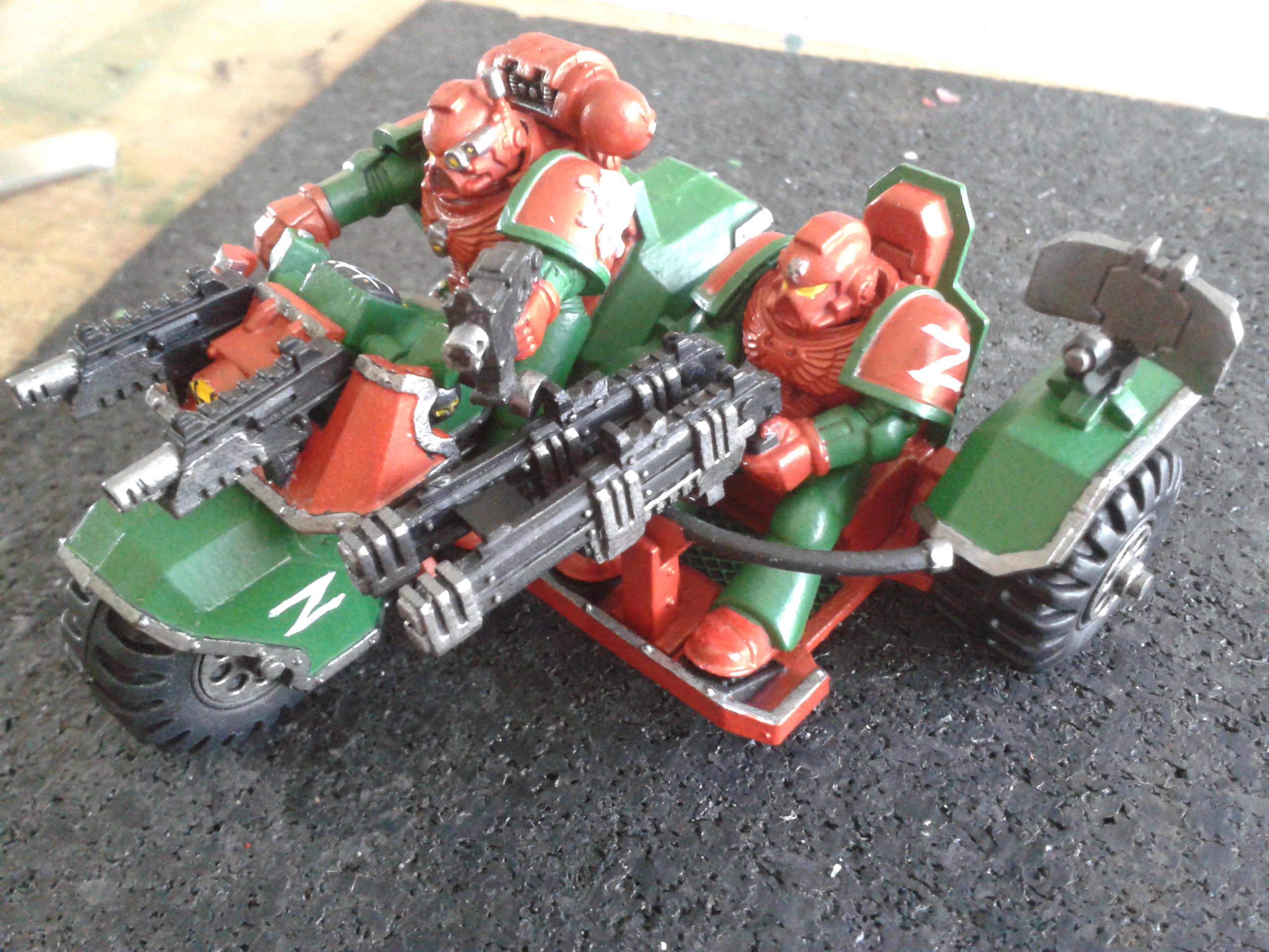 I had started the bike some time ago, then someone got me the sidecar bits for Christmas but I wanted to do something different for the heavy weapon. Originally I was going to use one the GW SM Missile launchers with extra spare missiles and a scanning/targeting type thing, but then I had a brainwave and decided to go with dual railguns. I think they look suitably lethal and would be really effective against armour (not that I actually play 40k, I just like the mini's).I'm also going to swap out the bolters for something a little meatier.