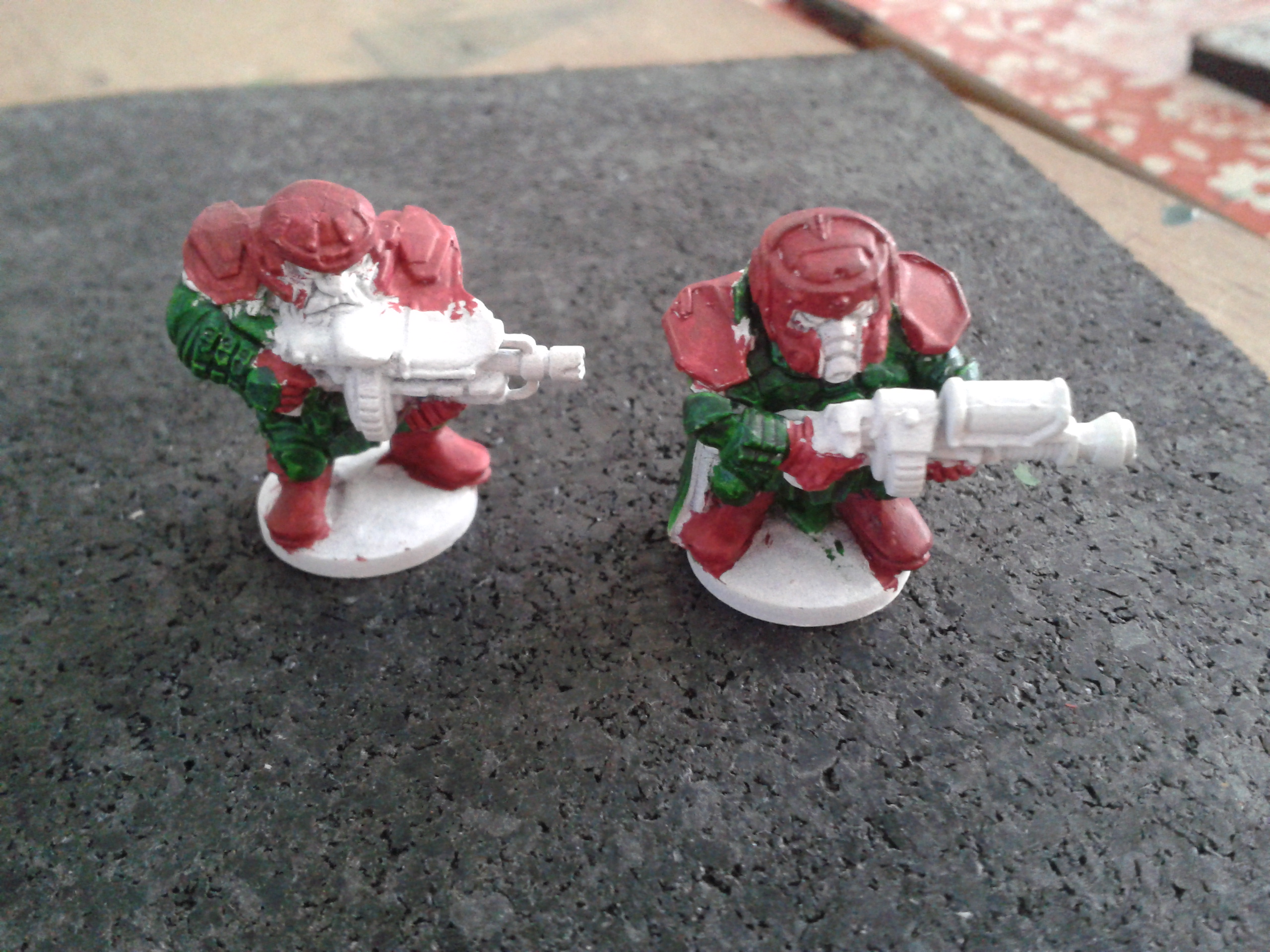 I do think those railguns look pretty nifty, but on a side note I must also point out that the red and green colour scheme makes those marines look very festive!