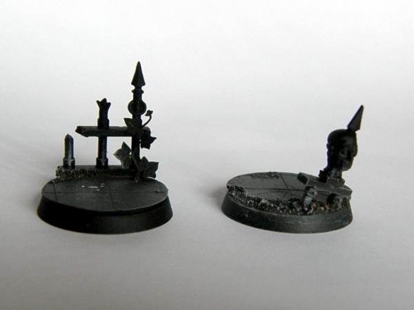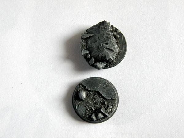 Cut up bits of sprue and stick them on (some of) the bases, to represent fallen masonry etc.