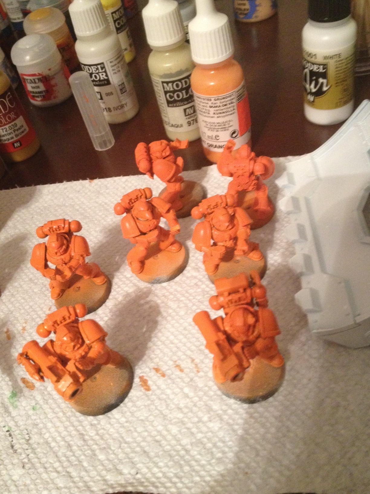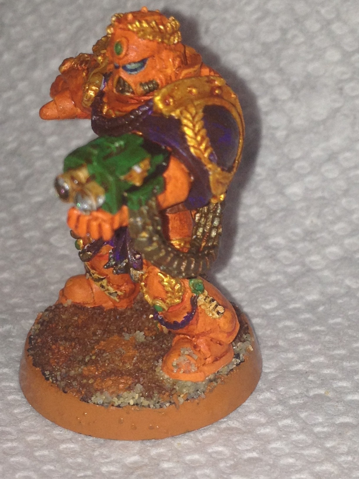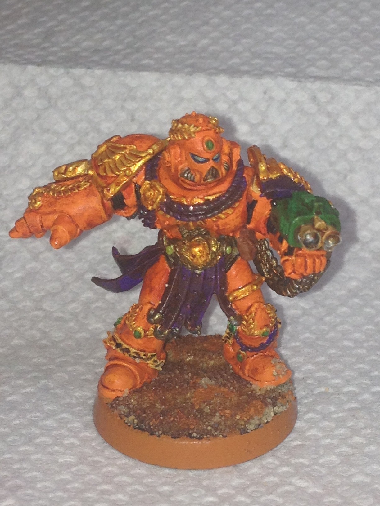 theophony - As far as orange washes I can make a good glaze, but It does not look how i like. I do like how a brown ink looks with orange as the shadows look more natural instead of black. It makes it kind of like a dark orange. instead of all black shadows. Is there a specific brand you were thinking? Because Vallejo does not make an orange wash or ink but they get close. They are highlighted but i need a better light source for photography, much like the crozius is washed you just can not tell with the photo. I decided instead of a camera to get a California Air tools compressor for my own line of work and for the hobby. That and the badger krome ate my wallet. Any advice on taking pictures would be appreciated as you can see i am no artist. Now as far as getting the shade done right i think i need to darken up the orange that you see now a bit more and the highlight will pop, because as of now on the color line for Vallejo i am just one step from each pot, it looks good in some lighting and in others you can not tell, even without the camera.