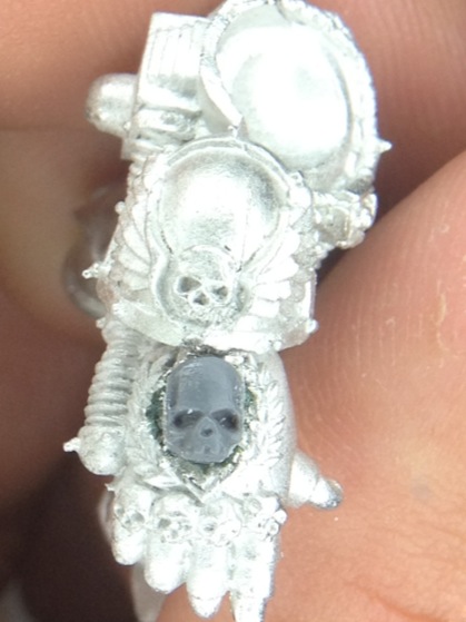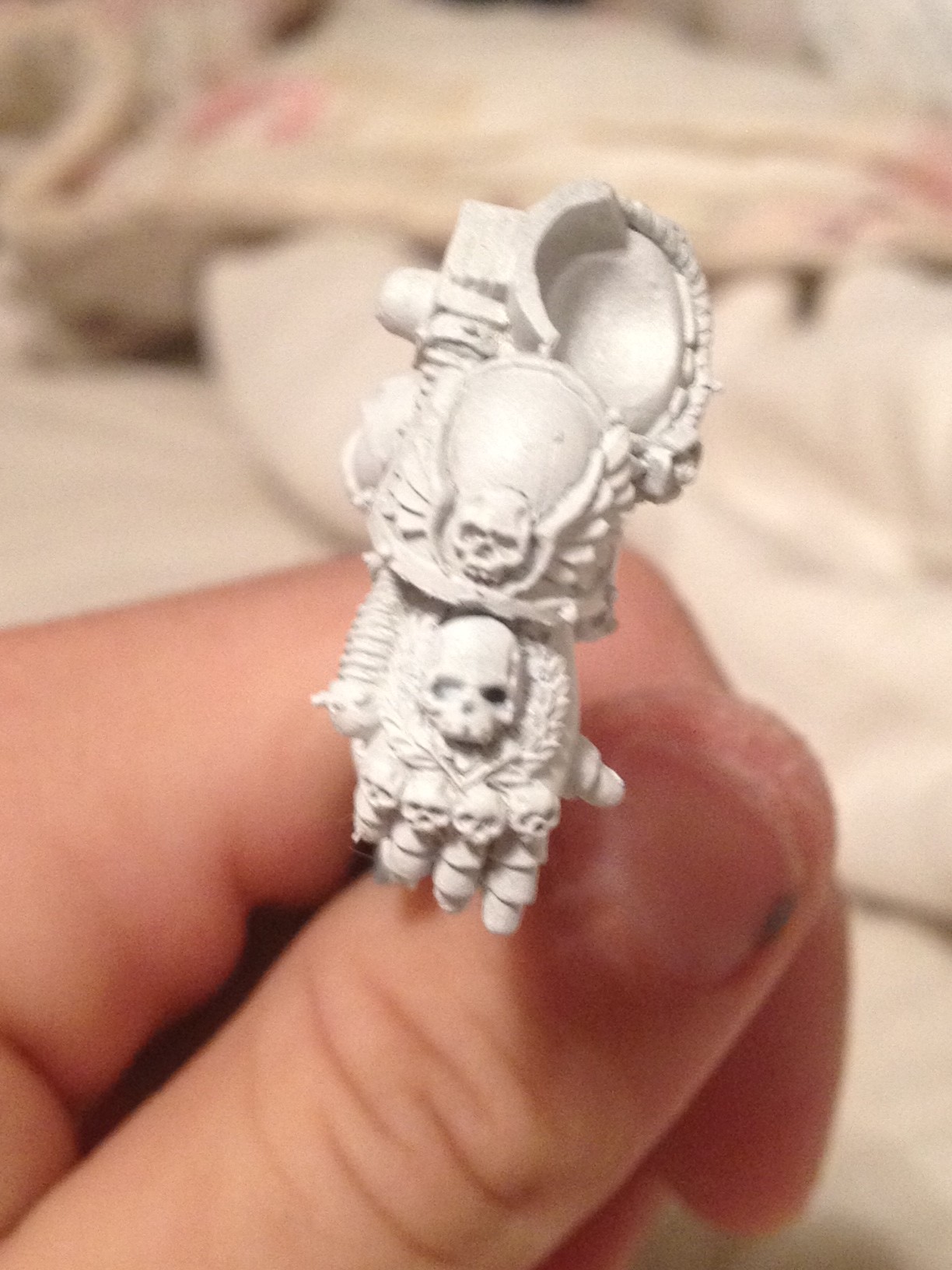 The replacement of the arm Crimson Fist with a Skull. still needs clean up and glued to center.