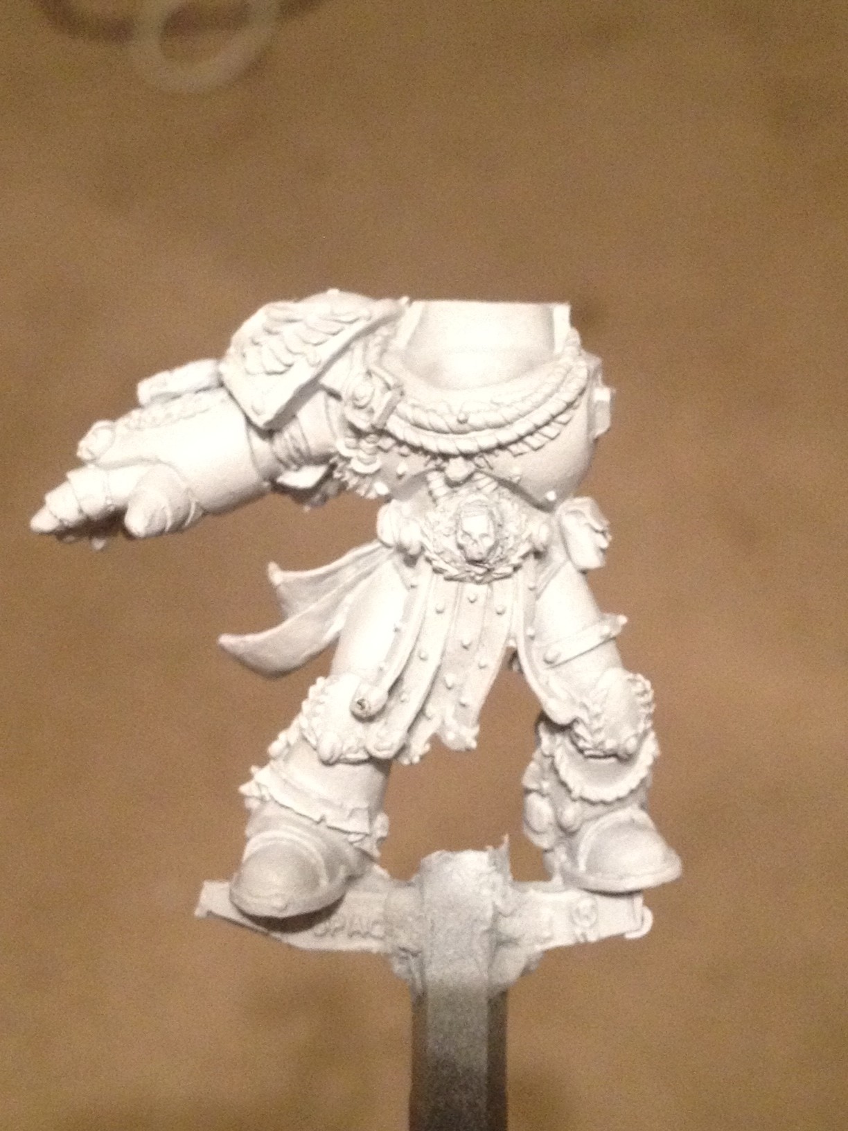 I am just upset about the vanilla models having permanent chapter symbols in them. This is a lot of work to eliminate the DV symbols, and a lot of ultramarine symbols. Thank goodness with my foot slogging chaplain he is the one from the Black Templars Chaplain Grimaldus. i will not be erasing the crosses one as they look cool and when i sit down and write out my chapter history and character history i will just say he went on crusade and is authorized so many crosses as campaign awards.