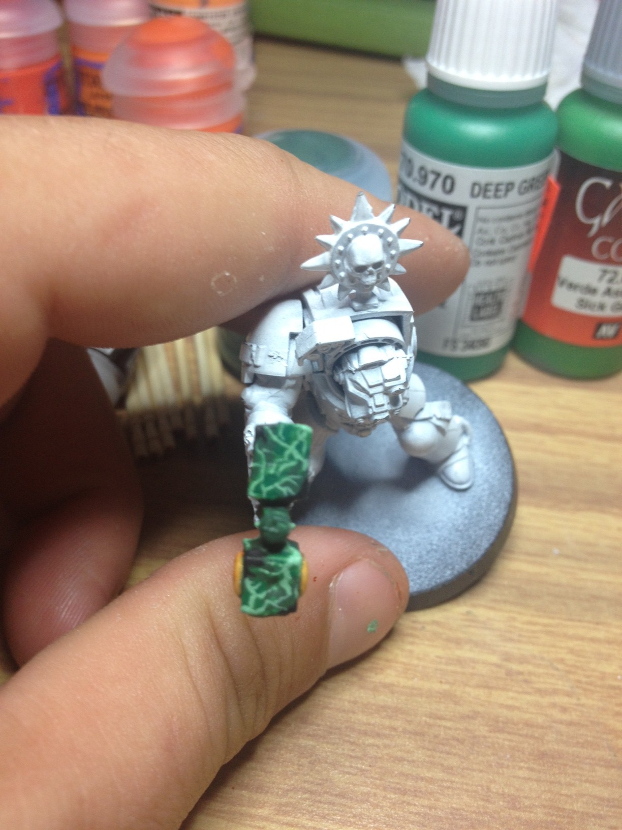 Think this would work with the oranges? As Green will be used in the army to represent merits of honor and SGT. I could be wrong on this but would it not be correct to assume that if they are in the first company as terminators they would wield green? I kind of cant wait to paint the terminators now but i should get some rest and finish cleaning my tac squads.