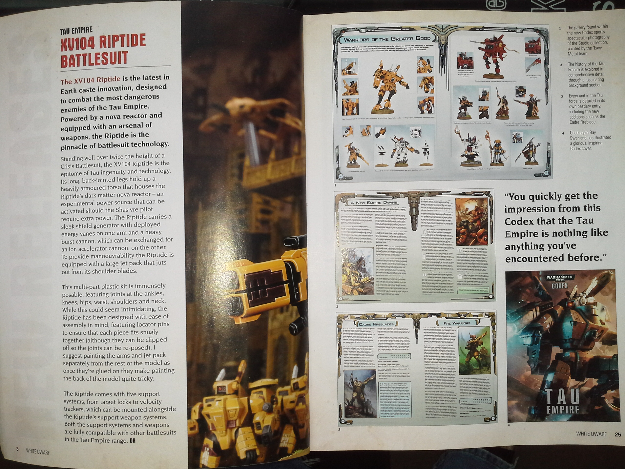 I might make note that on the digital version a sentence cuts off towards the end of the Tau battle report with expectation of it appearing on the next page... but it doesn't. Guessing whoever edited the digital edition messed up in InDesign.