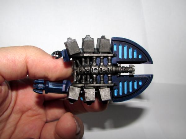 This one took me ages to complete. Again, a problem deciding the colour scheme. First I figured I wanted the "ribs" to be bone coloured to give the impression it was from an ancient animal long dead, but I figured it was too barbaric for a race such as necrons, so I figured it would also be done like the Immortal's "Living Metal"