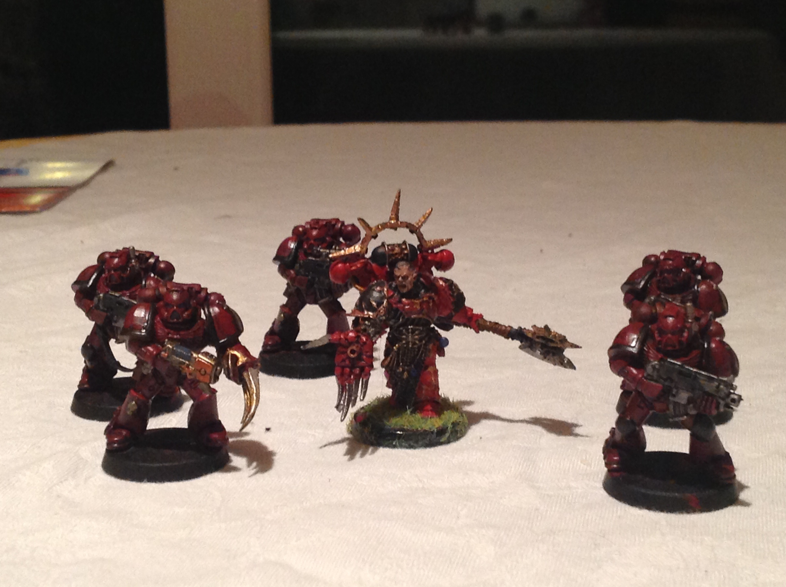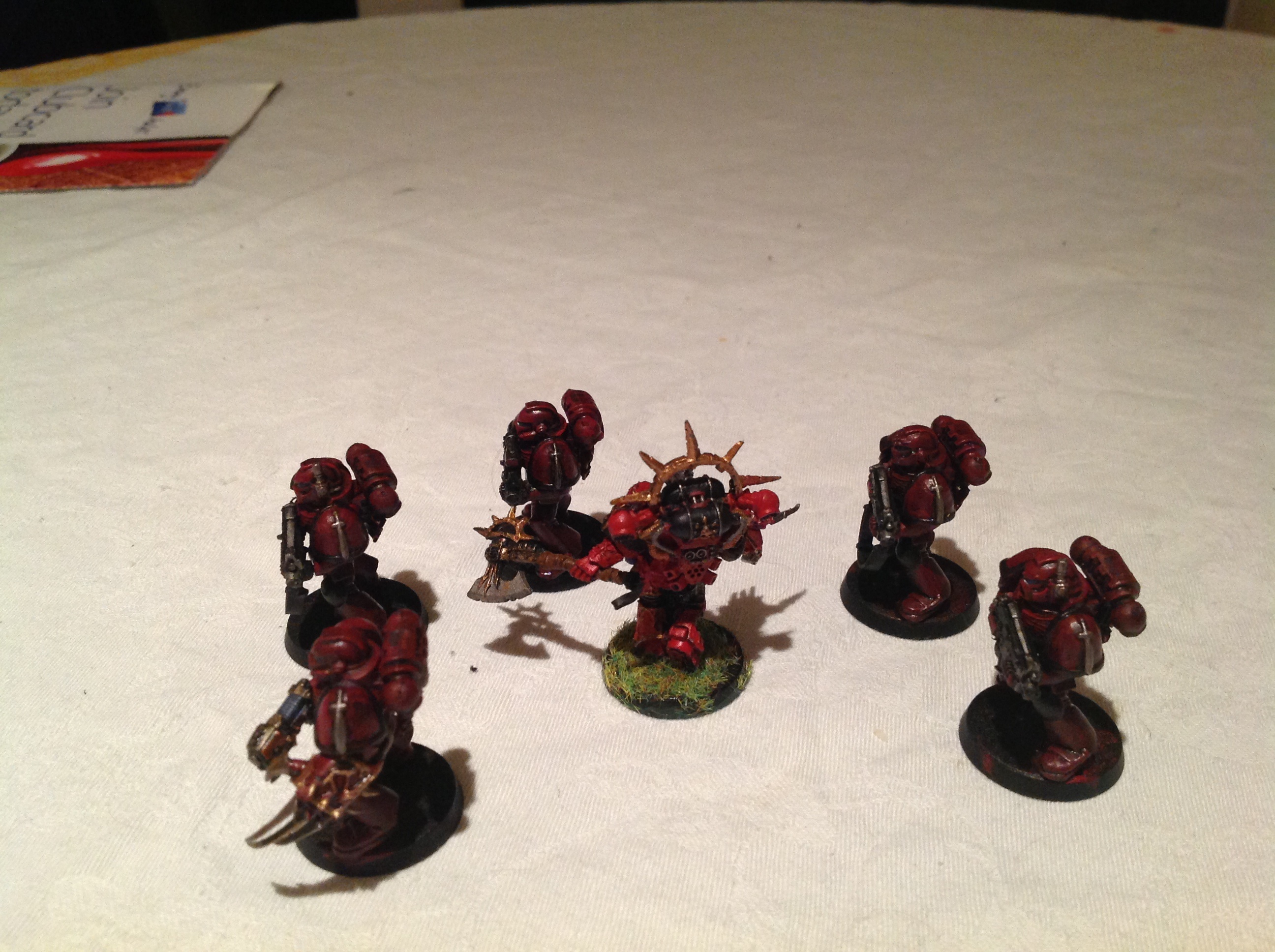 Still needs shading on Huron, and the marines are slightly modded dark angels snap-fit models. Took forever to cut the wings off the shoulder pads. Need advice on what to do next. Thinking I might use the leftover heads from my warp talons, but don't want to spend too much time cutting the old heads out. Not worried about ruining the paint job as they are only speed painted for now.