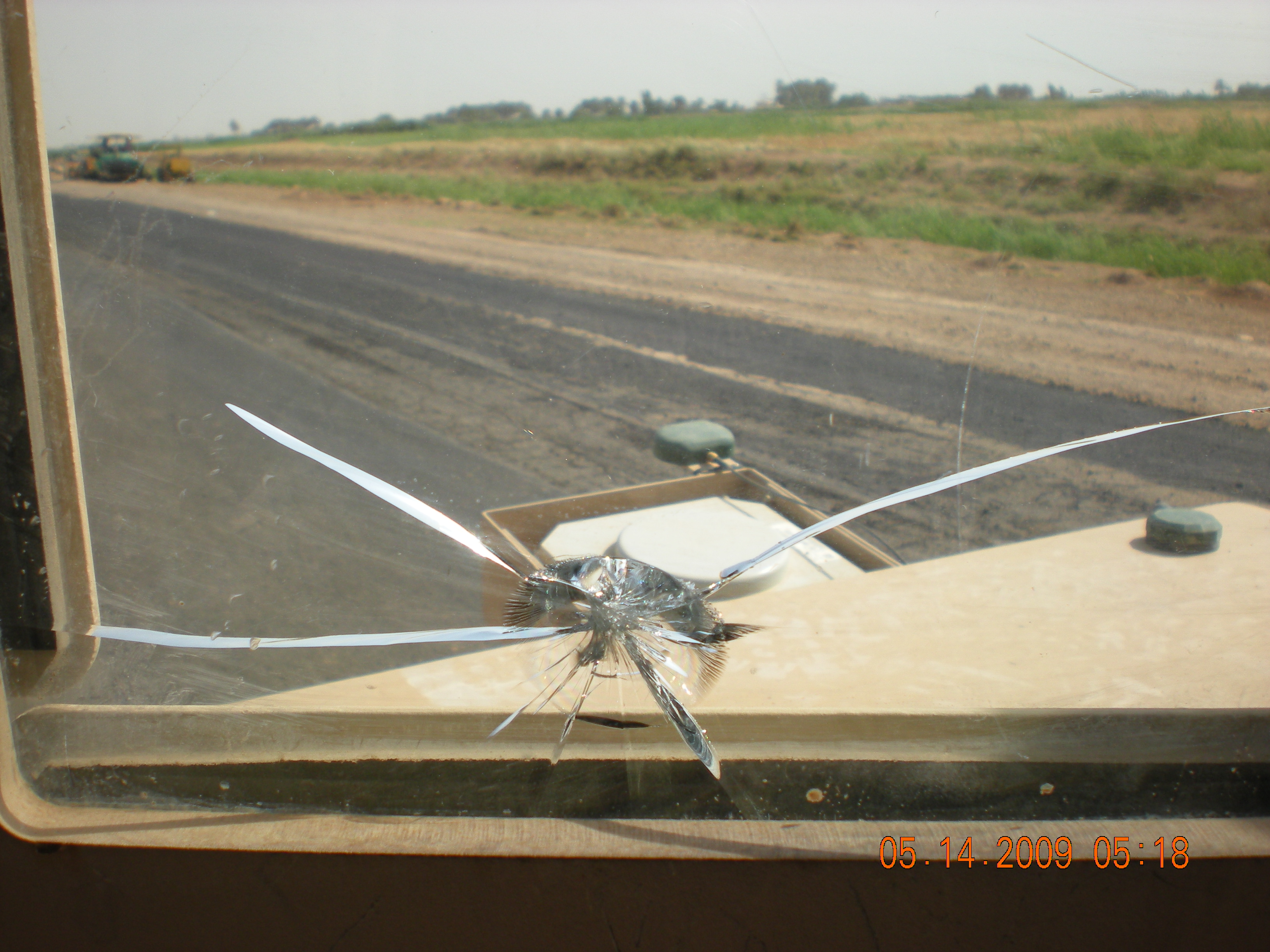I would take a look at some real canopy battle damage. You will notice there is a difference between regular glass damage and bullet proof glass damage. But here is a picture of bullet proof glass damage.