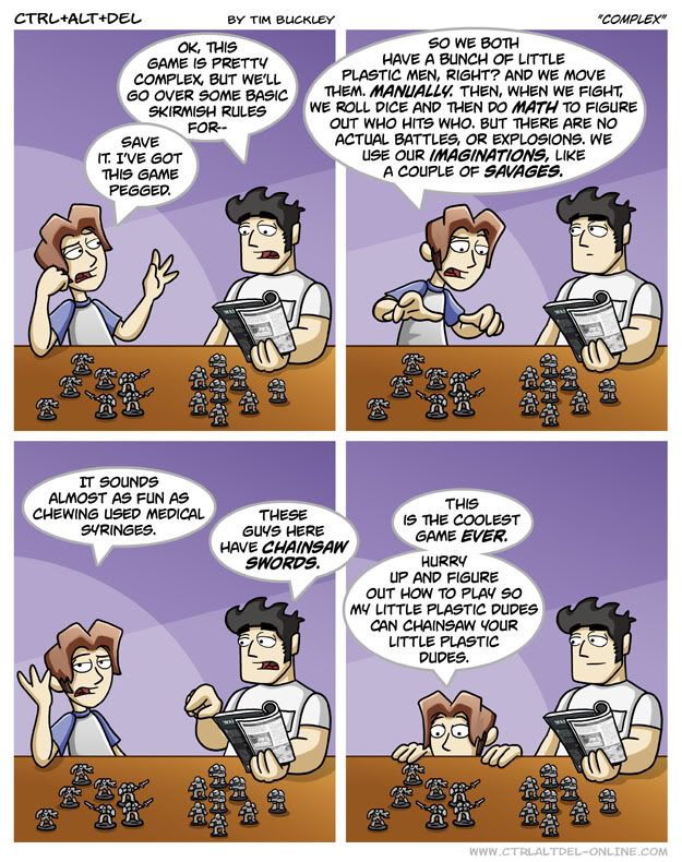 I just enjoy the hanging out quite a bit, and the kibitzing. I play a LOT, but I dont plan on spending a million bucks to go to bigger events any time soon and I skip tournies to play Dungeons and Dragons one weekend, but then travel 120 miles the enxt to go to a tourney with my friends so I mean...the hobby doesn't need to be the most important one you have in order to enjoy it; and the armies dont have to be uber painted to to play them with buddies.