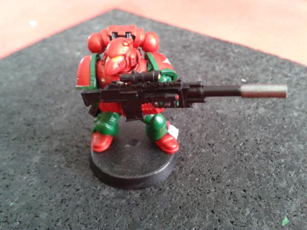 If you keep the stock on it won't fit, however they snip off easily and you can't tell it's ever been there. After snipping it then fits as it has the same end profile that a bolter would.