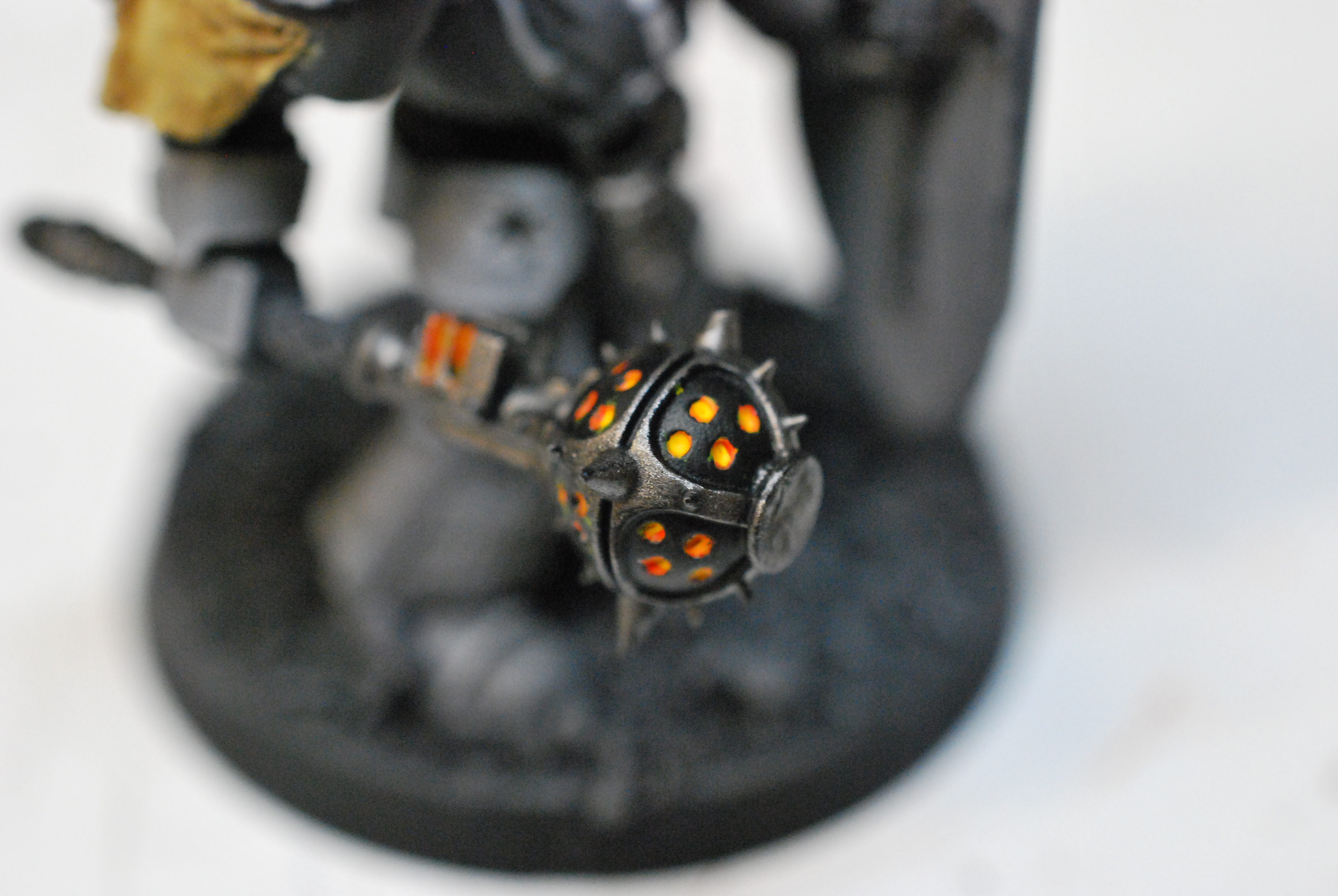 I've finished my second terminator. Turns out, making keys small enough to fit in a fist emblem is difficult, so the key has one tooth instead of two. I also designed the mace look like a furnace is glowing on the inside.