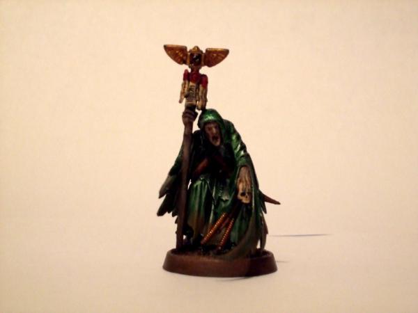 40K...I made an Astropath from it. As for the skull...well, Imperial agents in the artwork always look weird so carrying a skull round is probably fairly normal for them. Maybe he has found it on a battlefield and he's trying to pick up some kin dof psychic imprint off it or something? With