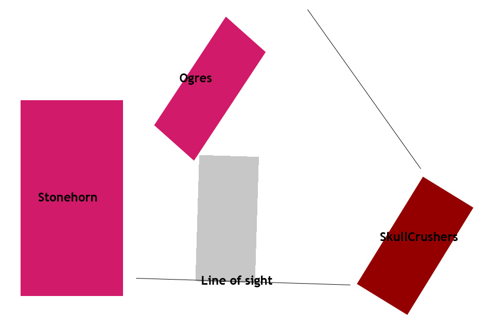 I've attached an image to try and make the situation a little clearer (not 100% accurate, but you get the idea hopefully), the grey rectangle is where the skullcrushers ended up, clipping the Ogres and no further than their original line of sight.