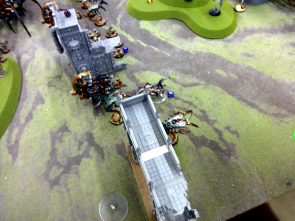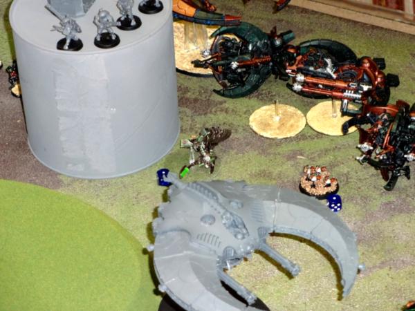 The other barge opens fire on the fire warrior squad on the bastion, killing several of the number, however they refuse to flee.